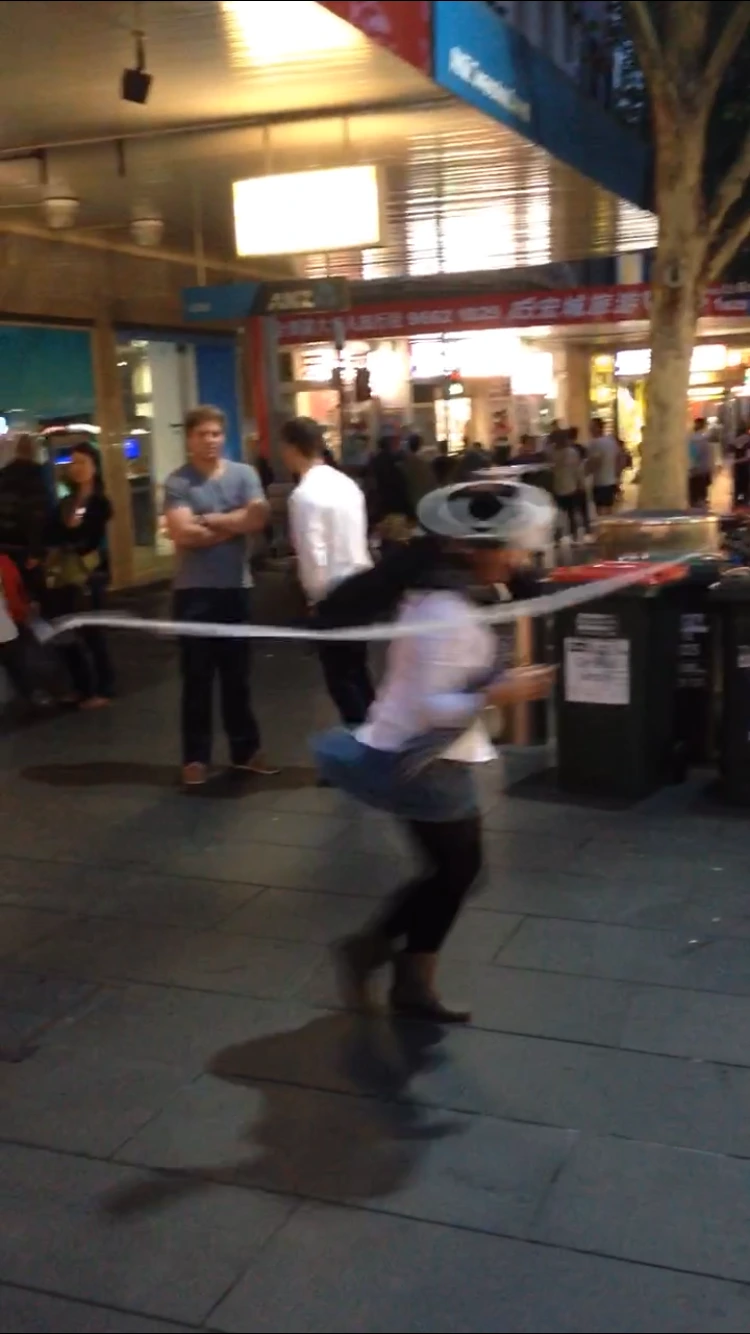 “당신은 한국에서 이 춤을 전공한 건가요? 당신은 이 춤을 배우기까지 얼마만큼의 시간이 걸렸나요? 저도 이 모자를 쓰면, 당신처럼 종이로 원을 그릴 수 있나요? “