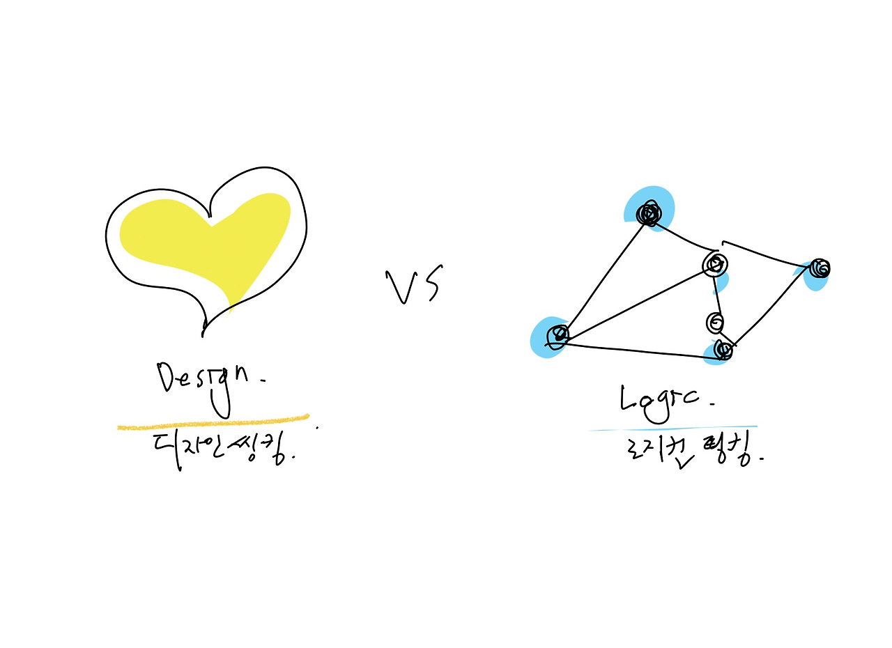 디자인씽킹과 로지컬 씽킹의 차이점의 큰 차이점은 디자인씽킹은 사용자의 공감을 통한 스토리 기반 사고방식이며 로지컬 씽킹은 데이터 기반 가설을 통한 문제 해결 사고방식이라 할 수 있다.
