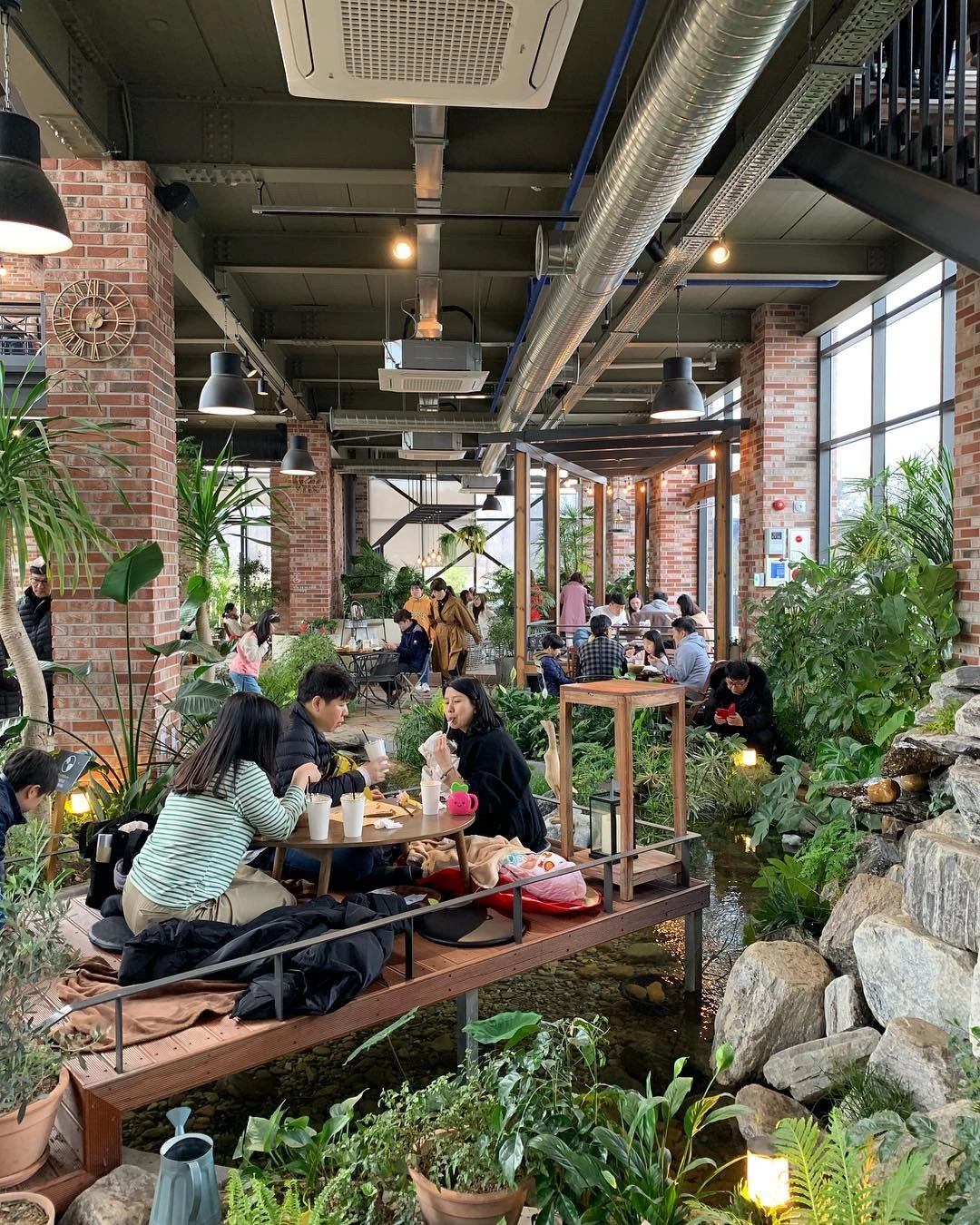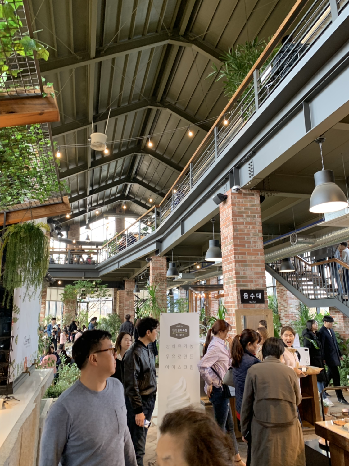 창고형 대형공간, 높은 천장과 스트리트형 공간구성,외곽이라 가능한 대형 주차장, 플랜테리어,식사와 커피 먹거리 한번에, 편안한 좌석, 유영하는 음악 등 다른 사람들의 간섭을 받지 않고 편안하게 휴식할 수 있는 공간적인 요소들을 꼽아본다.