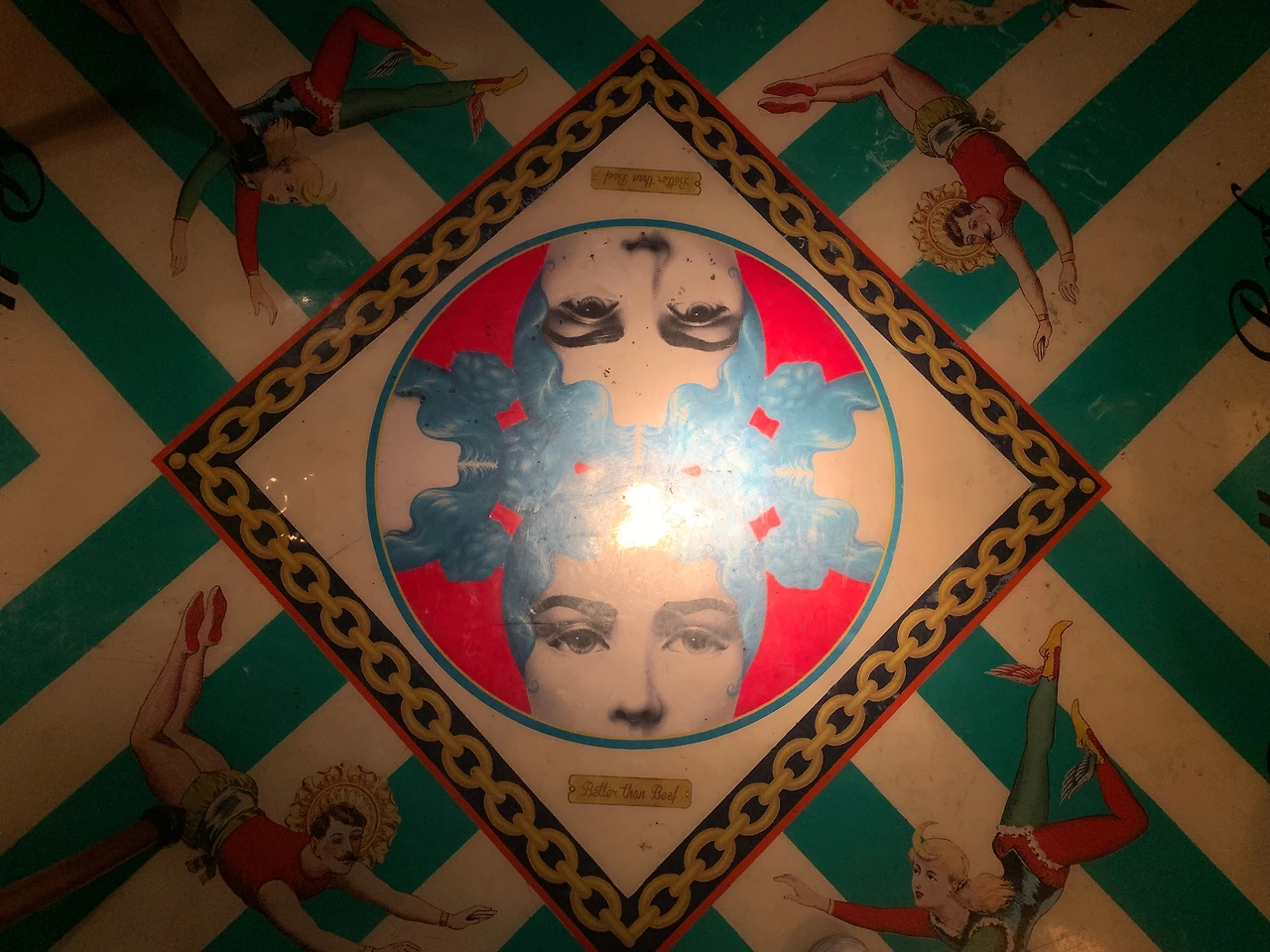 바닥에 인쇄되어 있는 팝아트, 벽면을 채운 엔틱한 그림들과 스팟 조명, 가구의 디테일까지 엔틱과 현대미를 함께 느낄 수 있는 브랜드 공간이라고 하겠다.