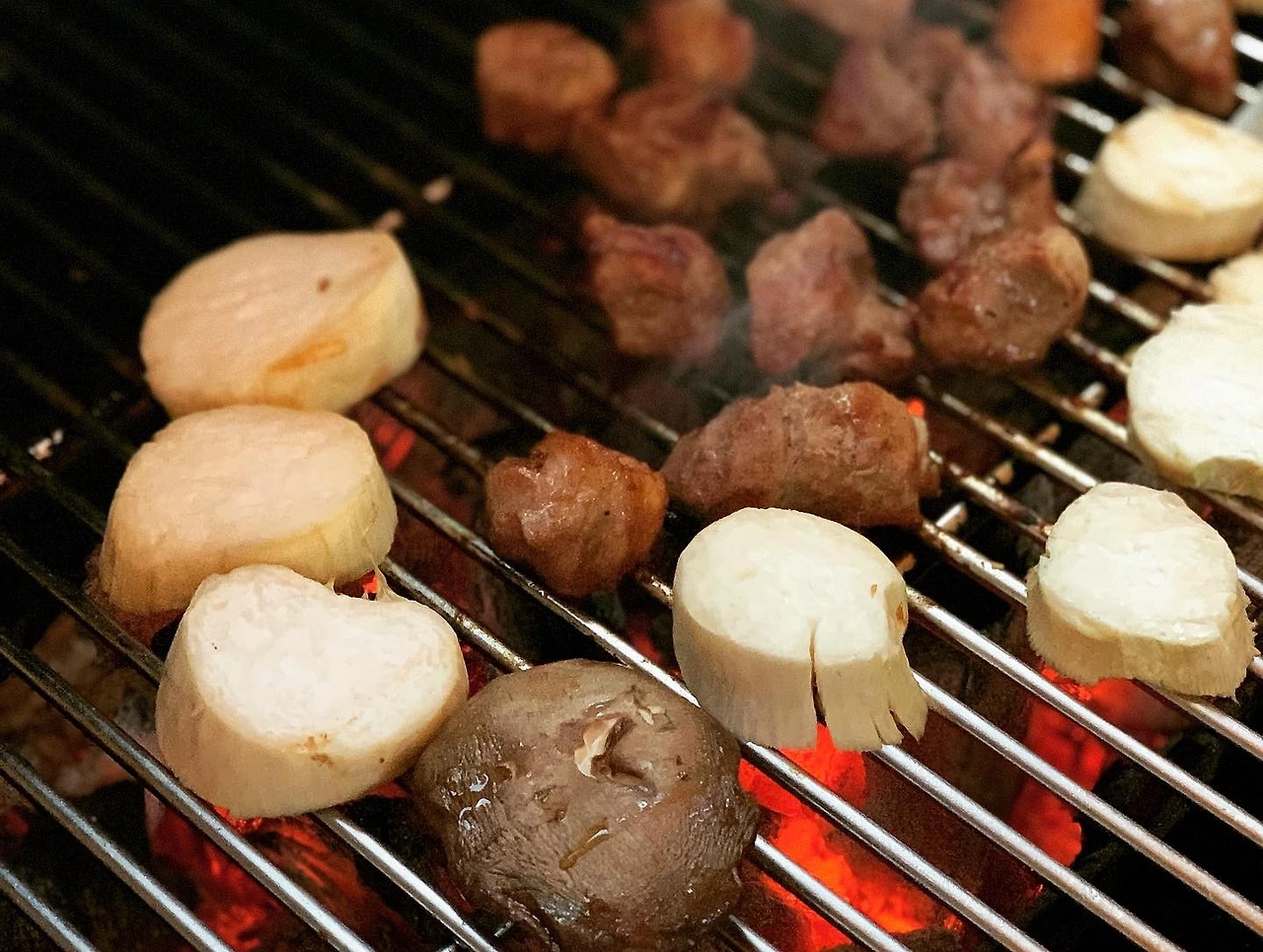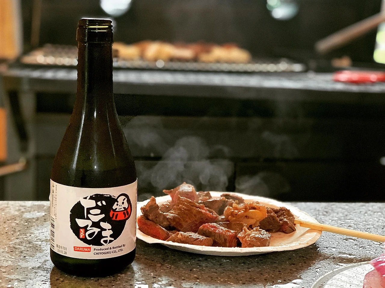 비 오는 날 숯불에 구운 고기와 사케 한잔, 좋아하는 플레이리스트를 켜고 텐트 안에 음악으로 꽉 차는 저녁이다.