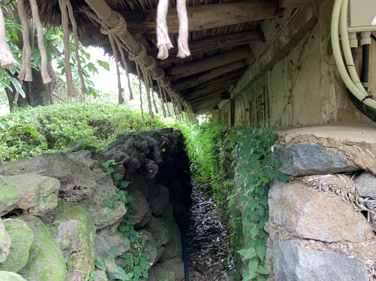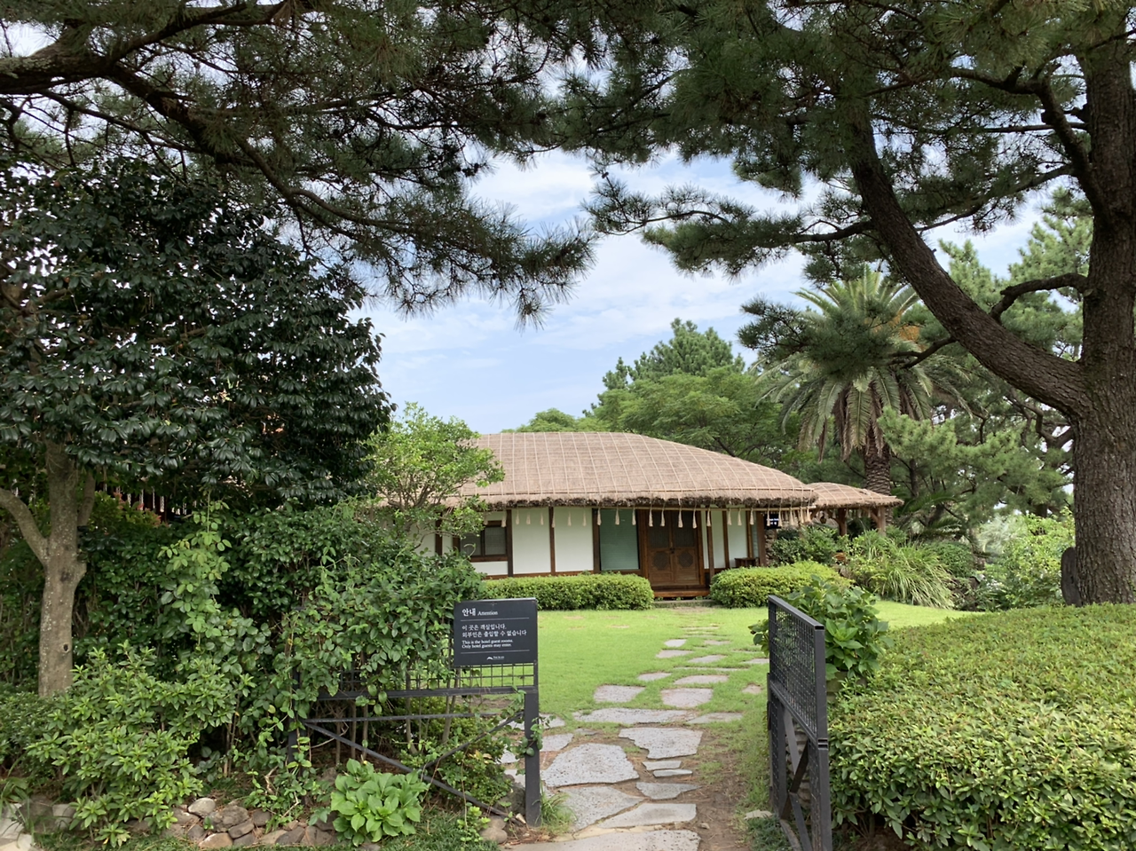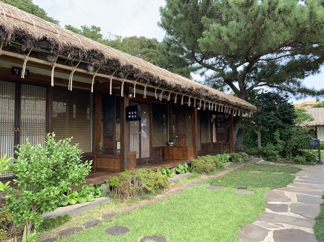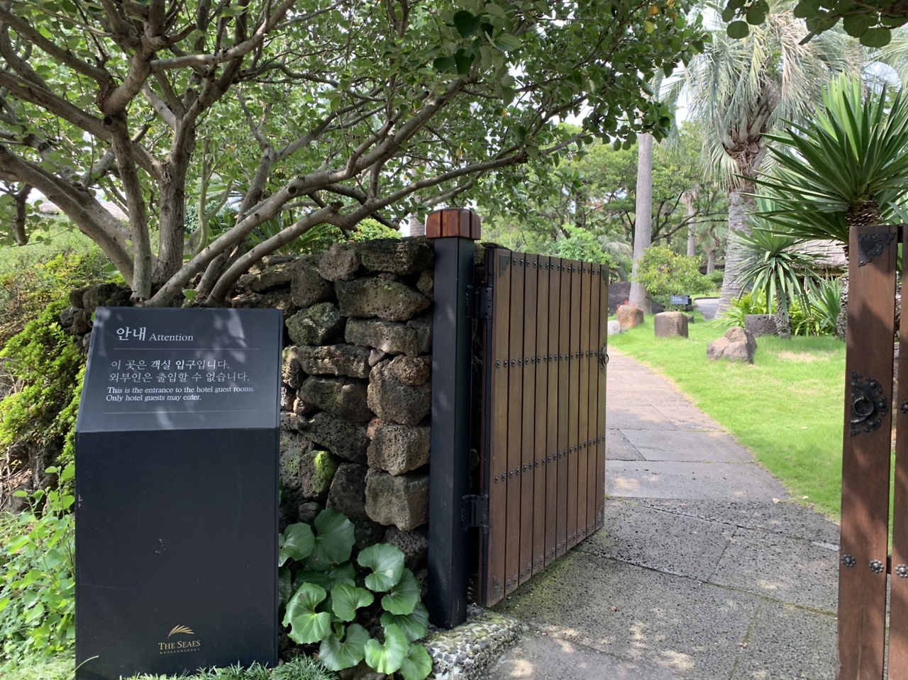 객실 쪽으로 걸어들어가며 자리한 풍경, 우거진 나무들 잘 관리된 자연이 담긴 정원에서 이 곳의 오랜 시간이 느껴진다. 제주의 전통가옥을 그대로 살린 초당 로얄스위트는 제주 바다와 가장 가까운 객실이라고 설명해주셨다.