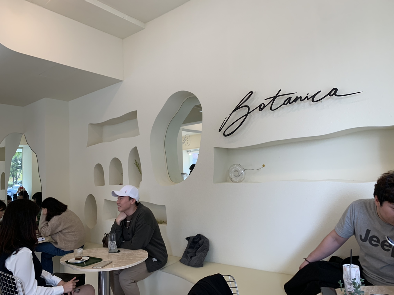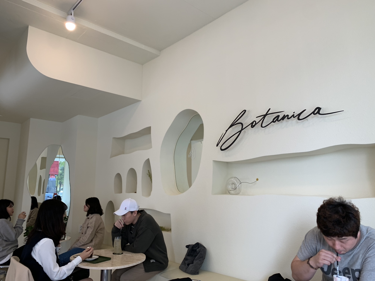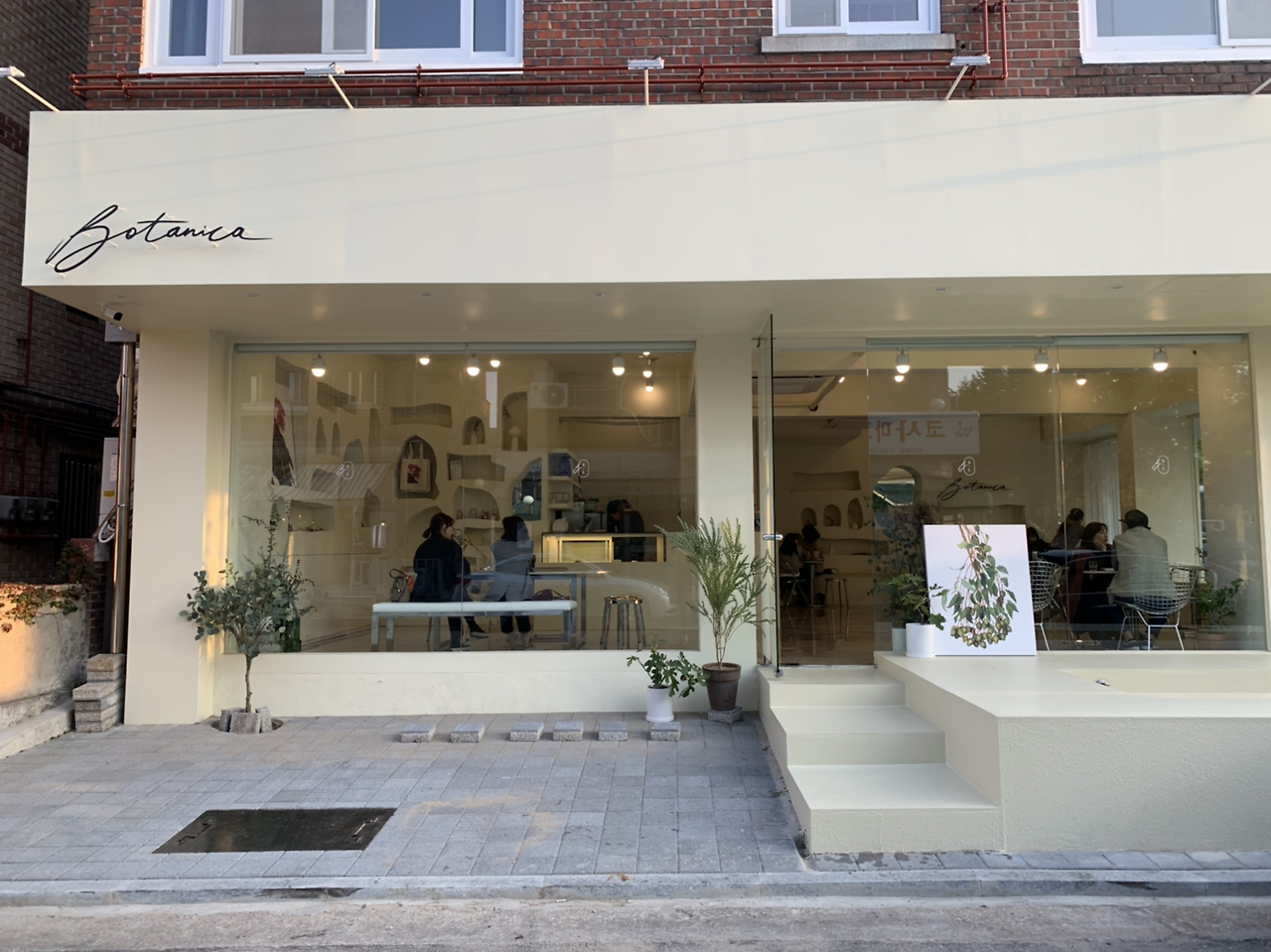 케노피에 부탁된 Botanica 로고의 심플한 필기체의 느낌이 모던함을 더해주고 미니멀하지만 서체하나로 샵과 카페를 함께 운영하는 부티크 이미지를 연상하게 합니다.