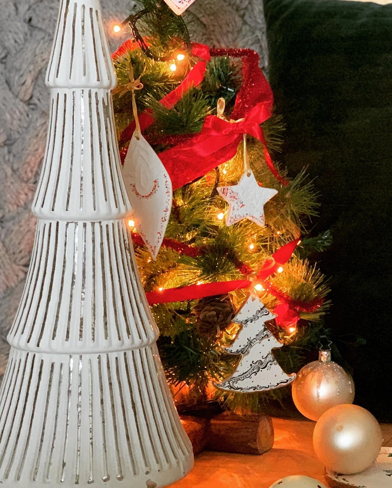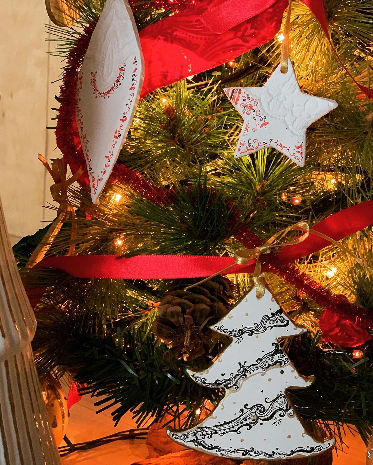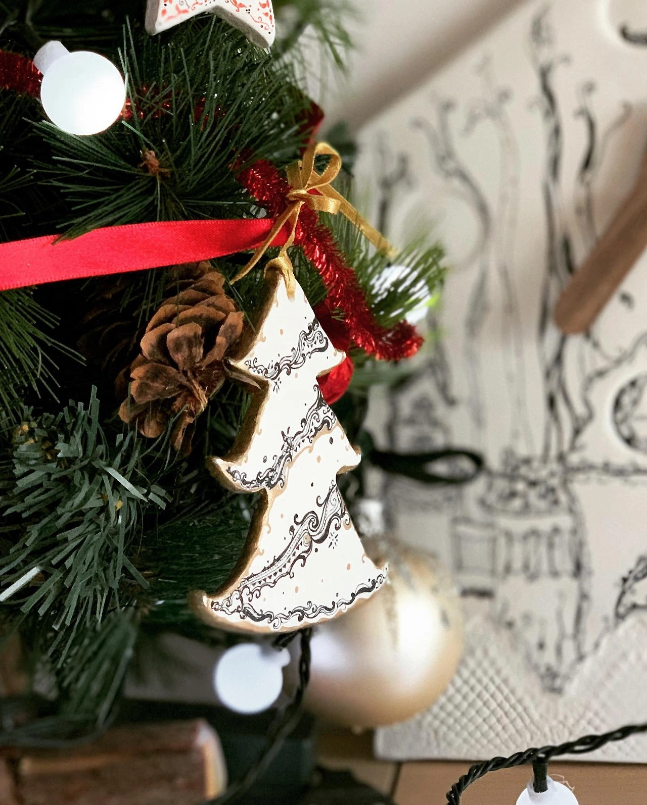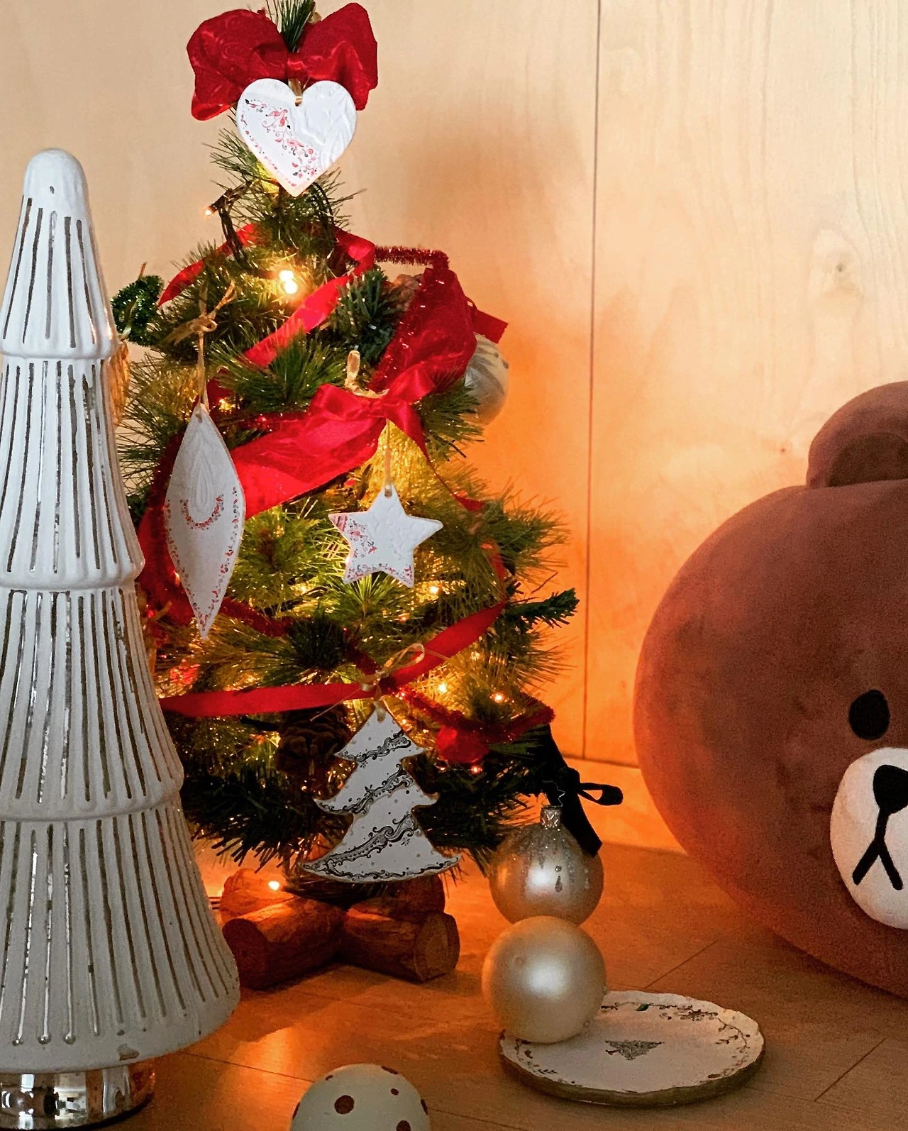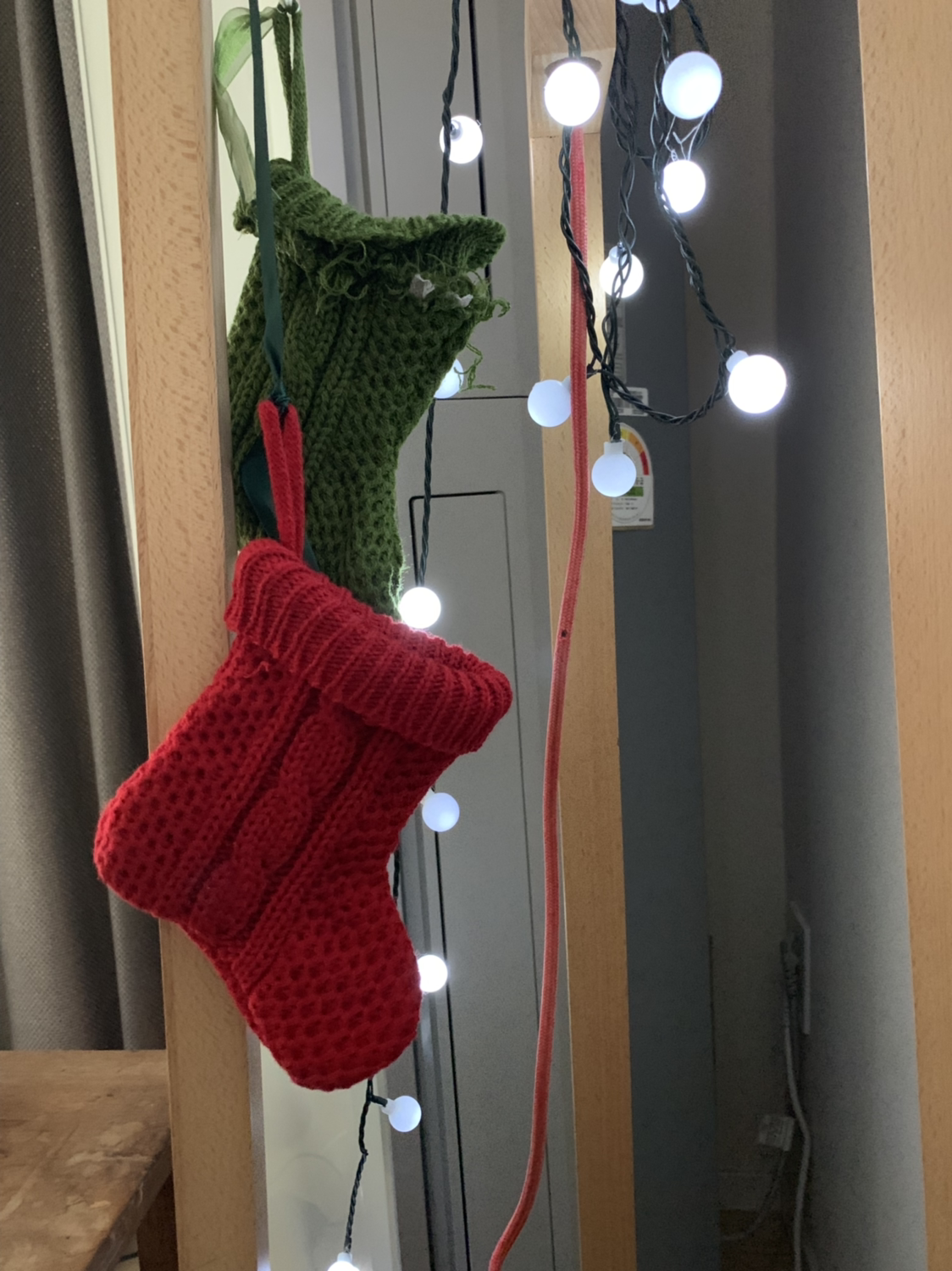 빨강, 초록의 컬러, 노란 전구들, 털양말, 그 무드를 느끼게 할 재료들을 준비하고, 올해는 직접 만든 오너먼트들을 달아보기로 ~