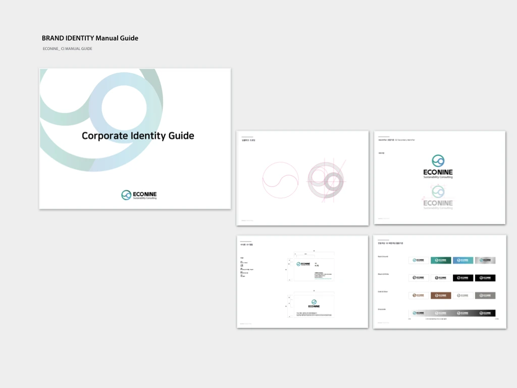 디자인 컬러 가이드를 중심으로 웹과 제작물에 적용되었으며, 고객 경험의 관점을 고려하여 에코 나인의 아이덴티티를 전달할 수 있도록 작업하였다.