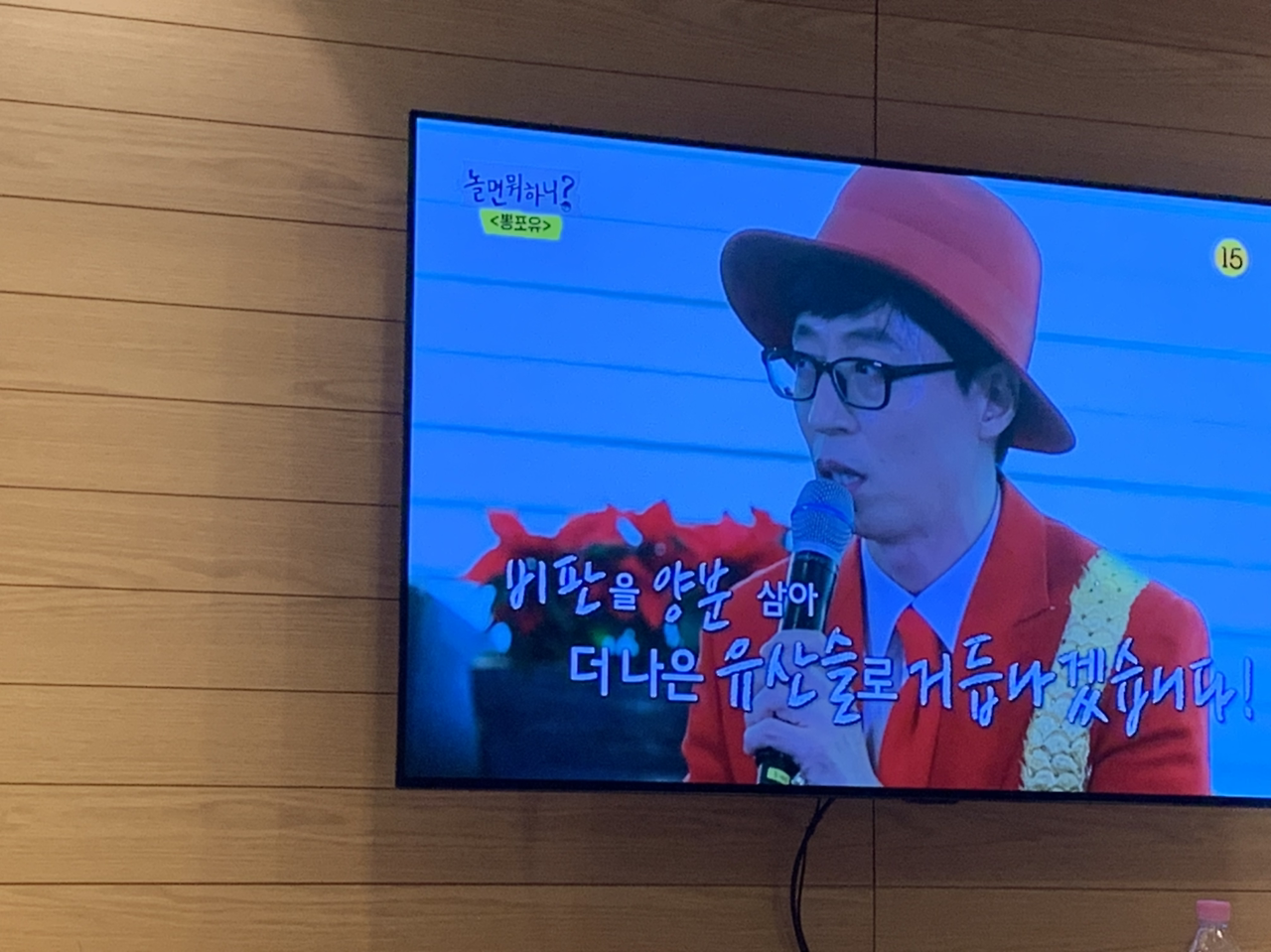 오늘 예능에서 유산슬의 기자회견 장면이 방송되었다.