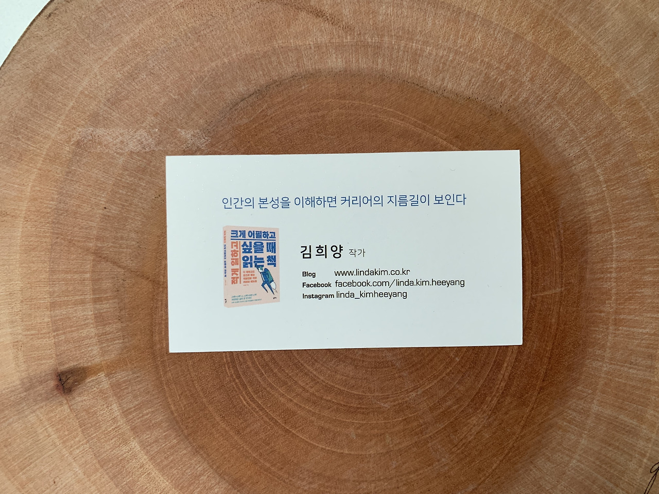 독자를 고려한 김희양 작가님의 책명함은 회사의 대표로서가 아닌 작가로 독자를 만나기 위한 배려인 것이지요.