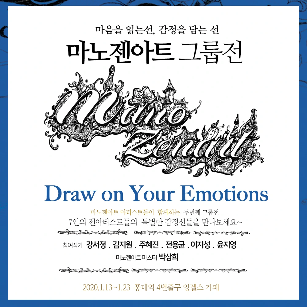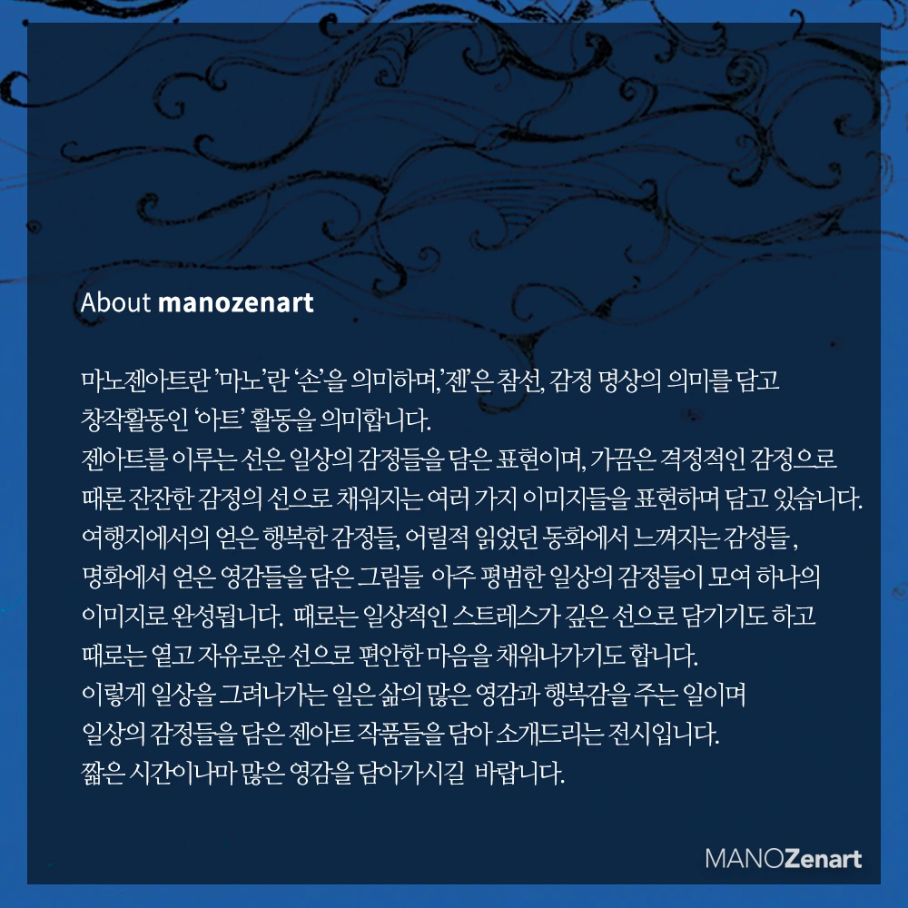 지금은 2020 마노젠아트 단체전 1/13-1/23 홍대 잉겔스 카페에서 ’Draw on your Emotions’ 마노젠아트 수강생분들과 단체잔 진행중입니다~^^
