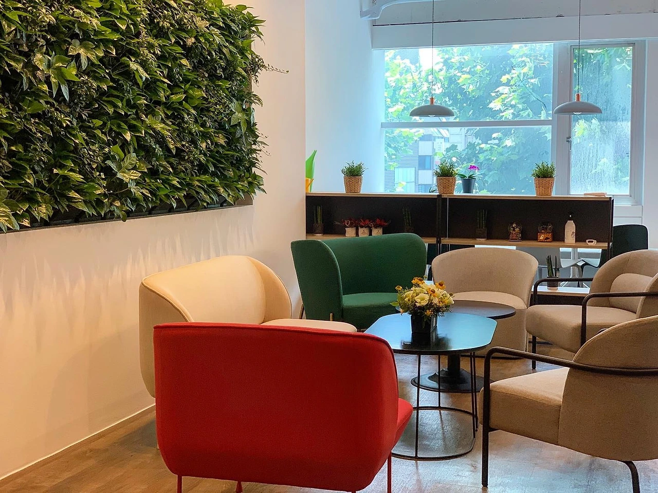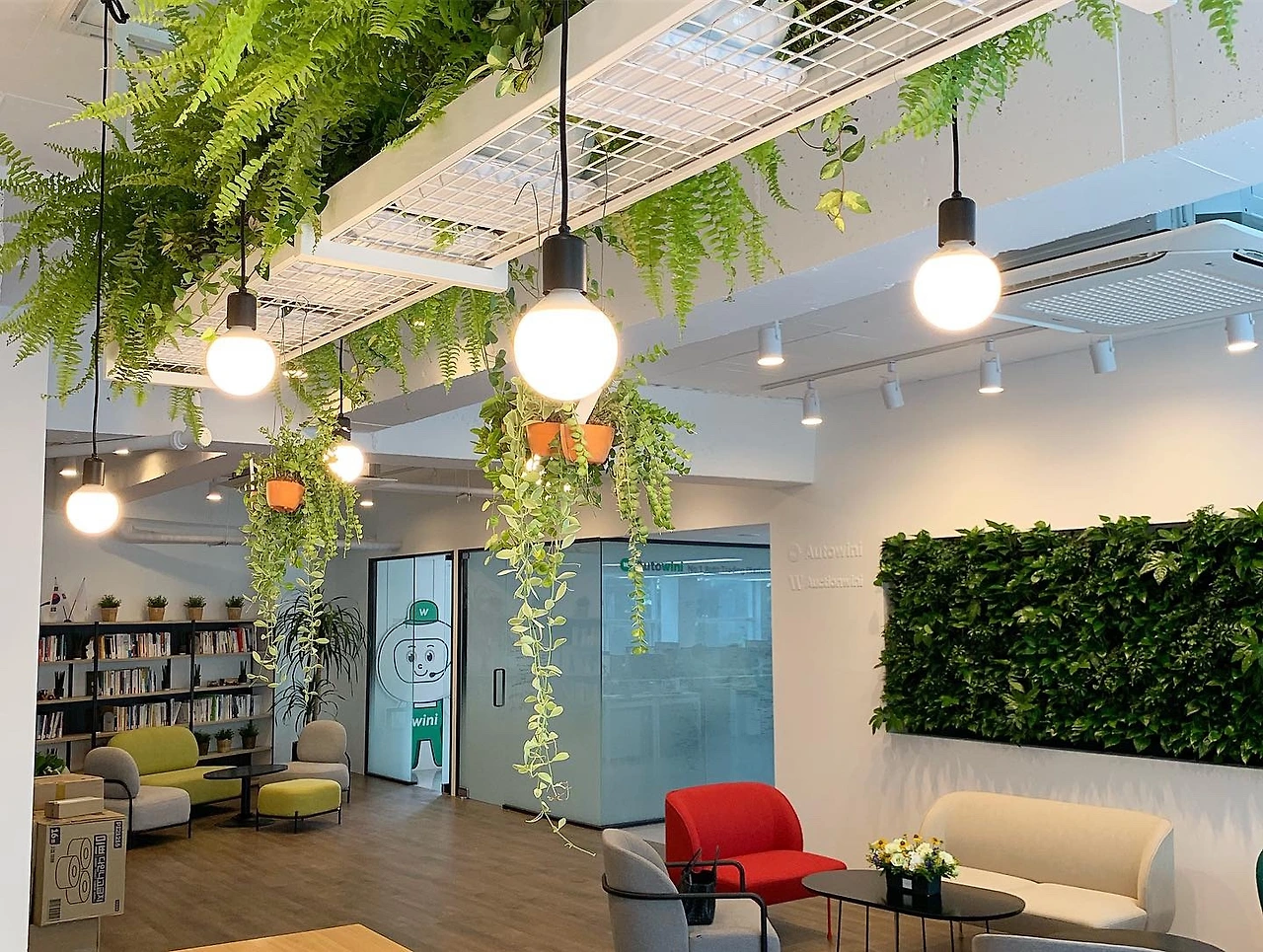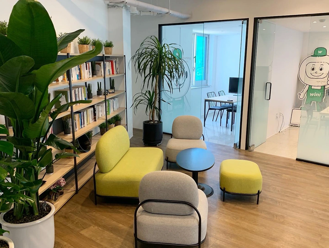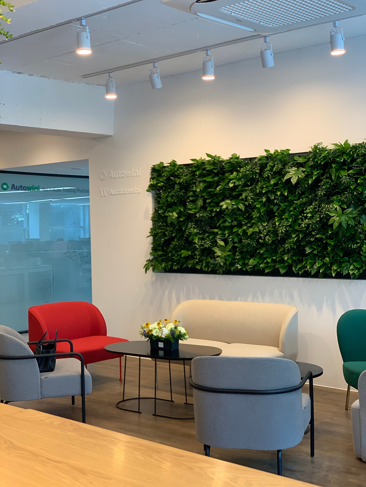 생화로 진행한 플랜테리어는 대표님이 담고자하는 재사용,재활용 친환경 미션을 담은 브랜드 서비스의미도 전달하는 요소로 공간을 이루는 좋은 매개체이며 초록 초록한 오토위니 브랜드 컬러와도 잘 어우러지는 소재다.