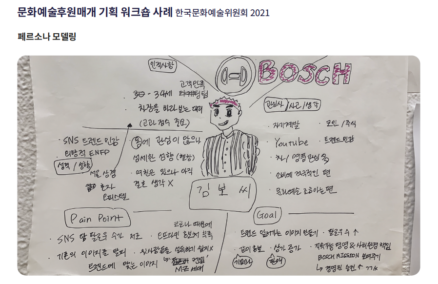 그리고 고객의 인상착의를 그림으로 그리거나 그들을 나타내는 사진을 골라 차트에 부착하여 인사이트 활동을 진행하면 퍼소나 입장에서 몰입하는 활동에 도움이 된다.