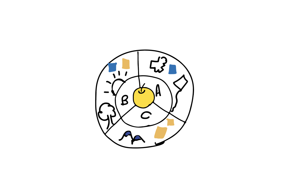 전지나 화이트보드에 세 개의 원을 그리고 우리가 선정한 키워드들 중간 원에 3~4 핵심 키워드를 작성하여 본다,