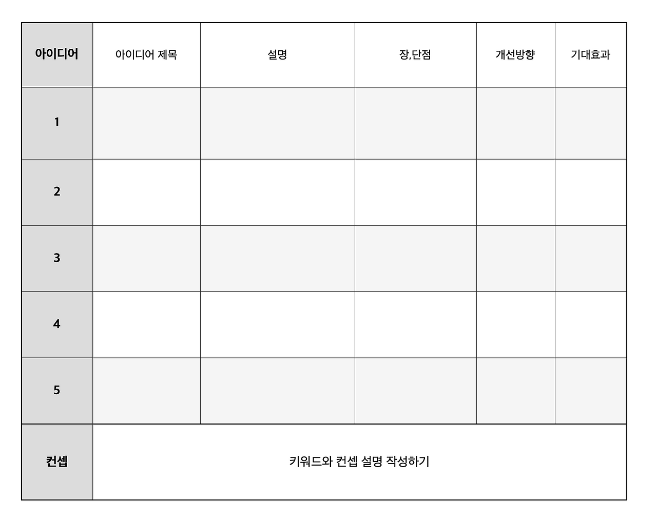 - 아이디어에 관련된 이미지들은 아이디어설명란에 같이 부탁해두면 이후에 생각을 상기시킬 때 좋은 자료로 활용할 수 있다.