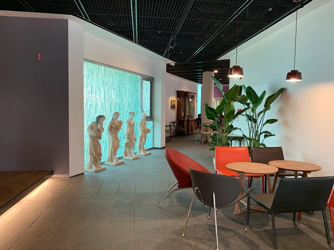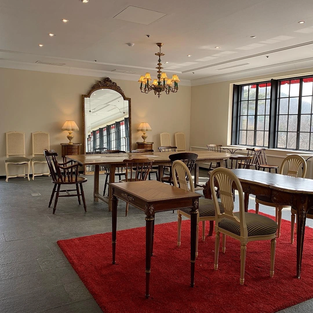 200년된 가구에 앉아 커피한잔 즐기는 특별한 경험을 제공하는 공간, 정원과 넓은 시야를 확보할 수 있어 여유를 즐길 수 있다.