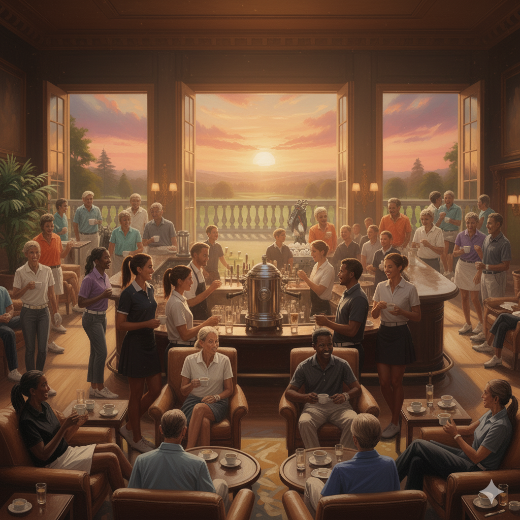클럽하우스에 사람들이 바쁘게 움직인다. 들떠 신난 사람들 말소리와 작은 에스프레소 잔이 받침잔에 부딪히는 소리가 경쾌하다. 몇 모금이면 그 커피를 모두 들이켜 버린다. 커피 향과 빈 잔을 내려놓은 사람들의 대화 소리는 클럽하우스를 가득 채운다. 아무도 없던 그곳은 방금 전까지 얼음처럼 차가운 공기만 있었는데 이제는 따뜻하고 아늑하게 데워졌다.