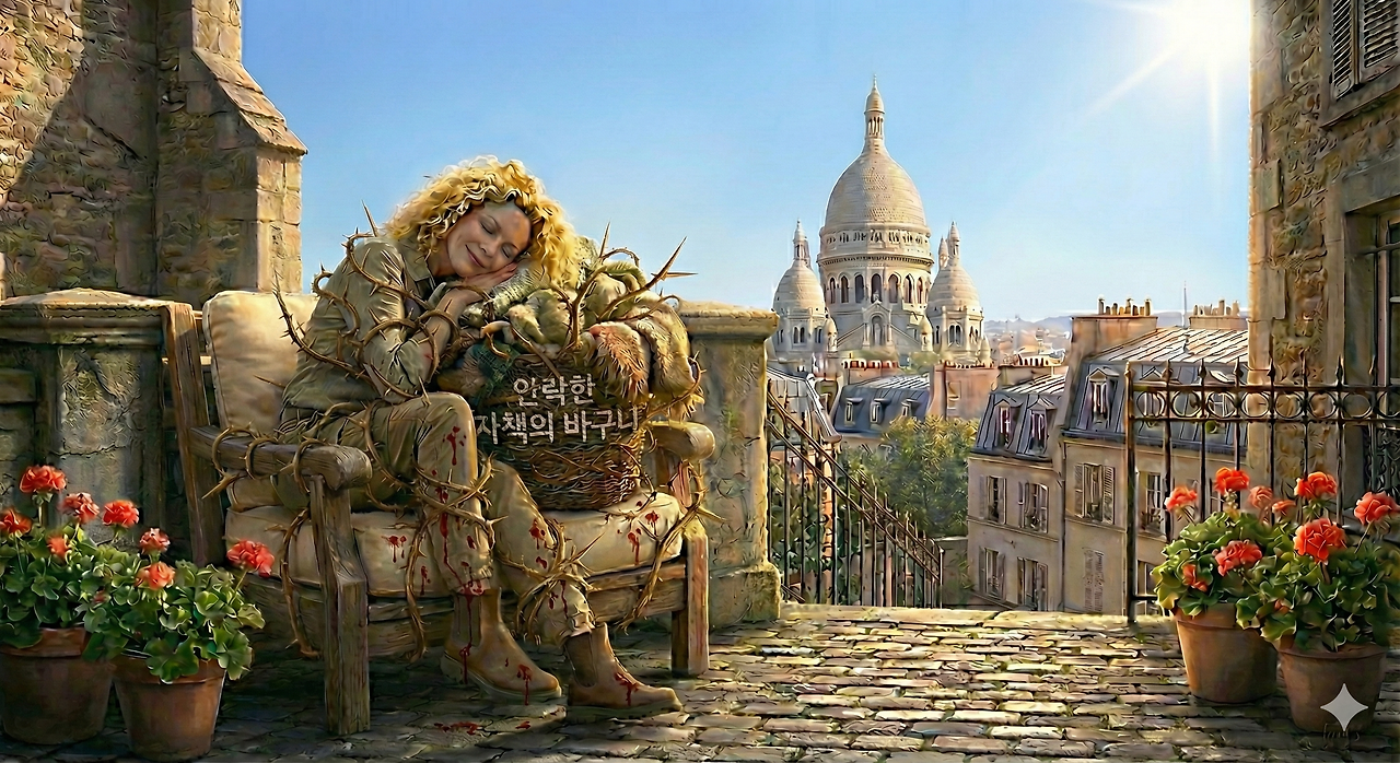 "팔에 낀 바구니가 안락했고 익숙했어. 그래서 곁에 낀 자책의 바구니에 의존했네."