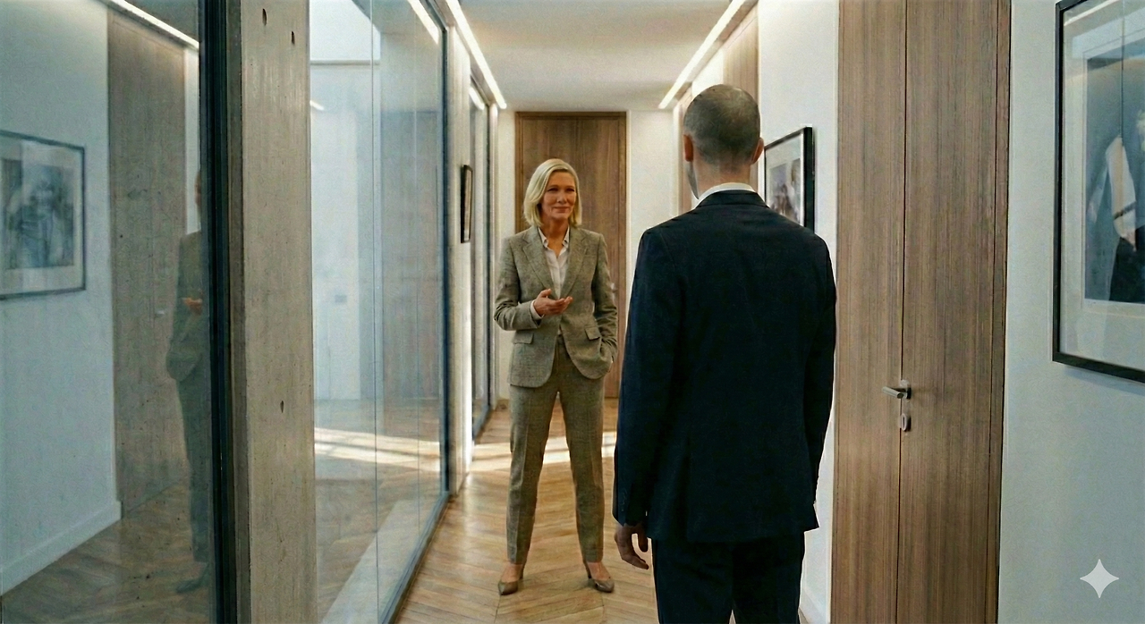 브리스는 이 회사의 매니징 파트너이다. 큰 입에 웃상이라 늘 웃고 있는 듯 하지만 여기 모두를 숨 막히도록 압박하는 것에 매우 익숙한 사람이다. 그런 브리스가 복도 반대편 창문에 지나가는 것이 보이자 얀이 자기 사무실로 들어가 버렸다.