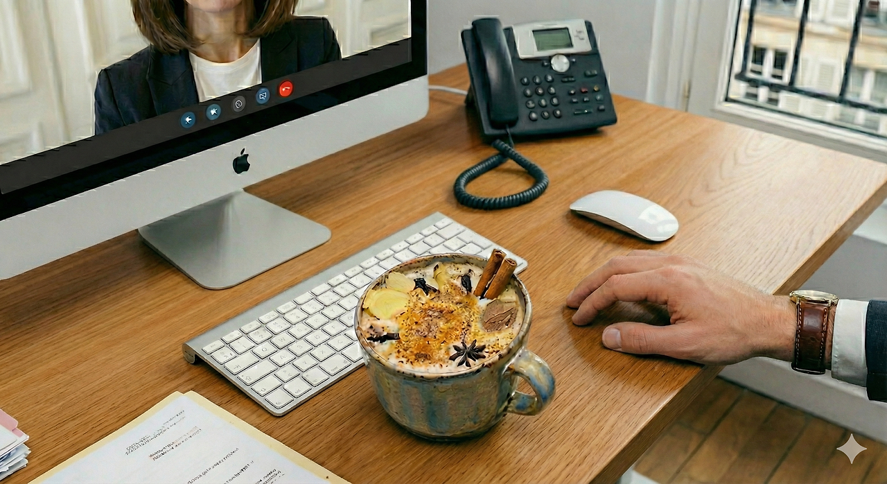 미팅 전에 야심 차게 만들어 놓고 미팅 동안 전혀 마시지 못했던 차이 밀크티를 한 모금하며, 화상미팅 창의 가브리엘을 바라보았다.