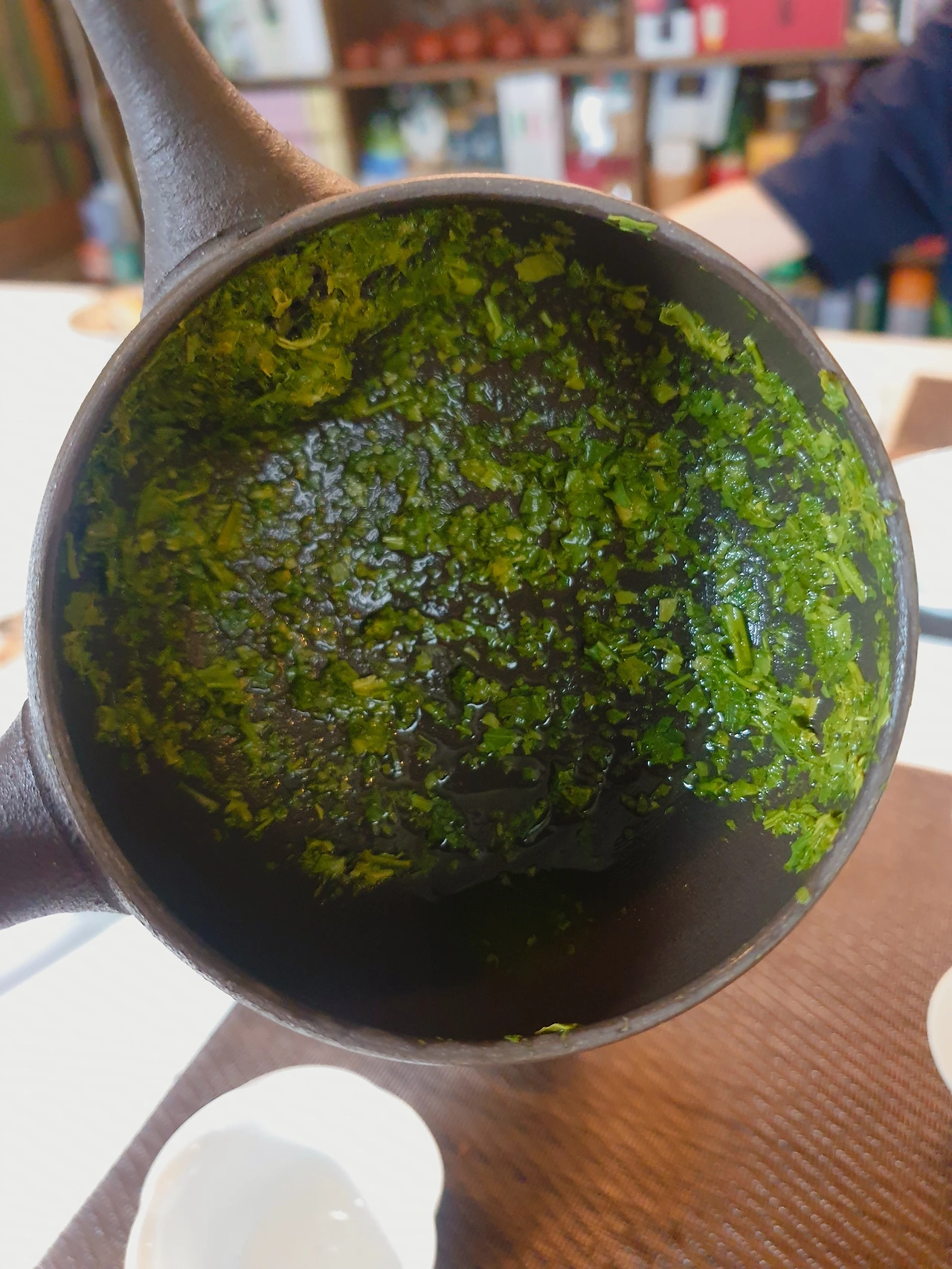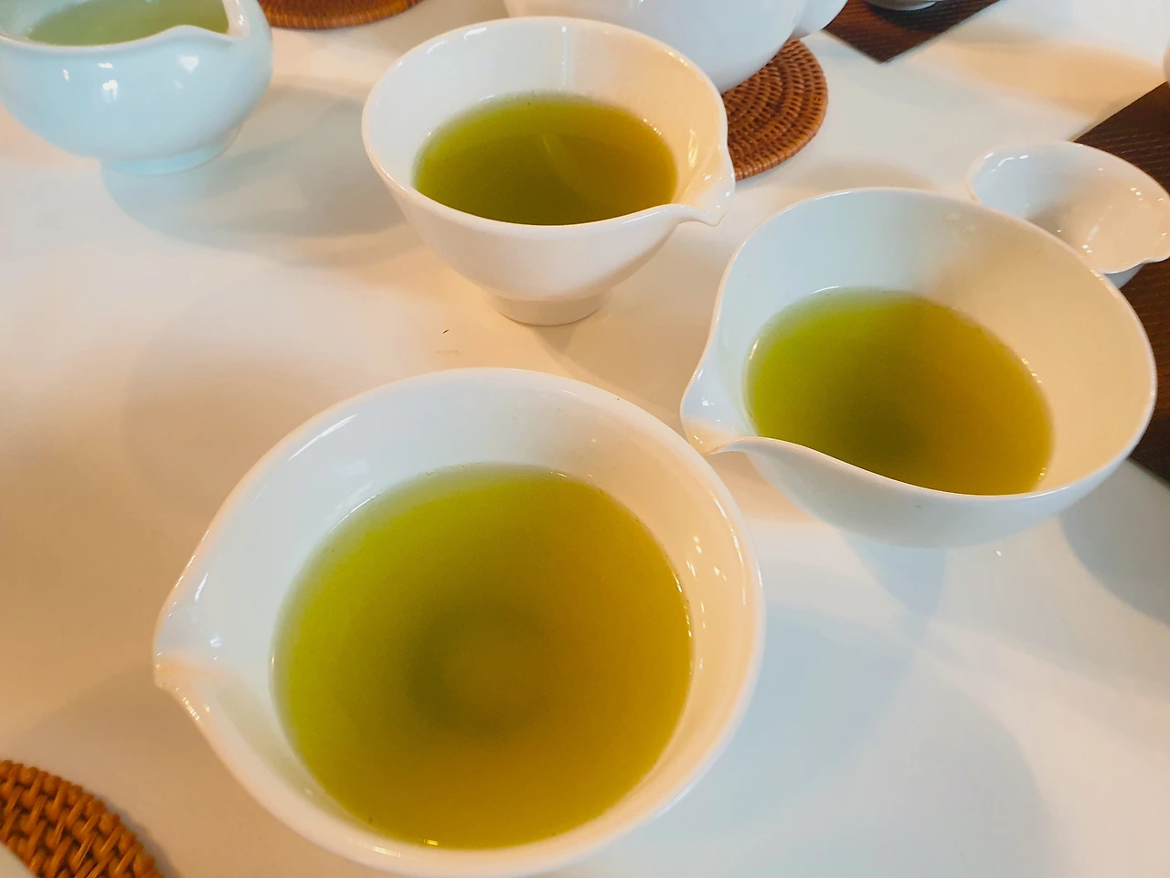 일본은 차나무의 줄기부터 부스러기까지 모두 차로 만든다. 그래서 건차가 매우 가늘고 부스러기처럼 촘촘한데 그래서 숙우에 차를 따랐을 때 잘 걸러지지 않는다. 그대로 몇 번 마셔보니 부드럽긴 하나, 너무 쓴 맛이 강하게 느껴졌다.