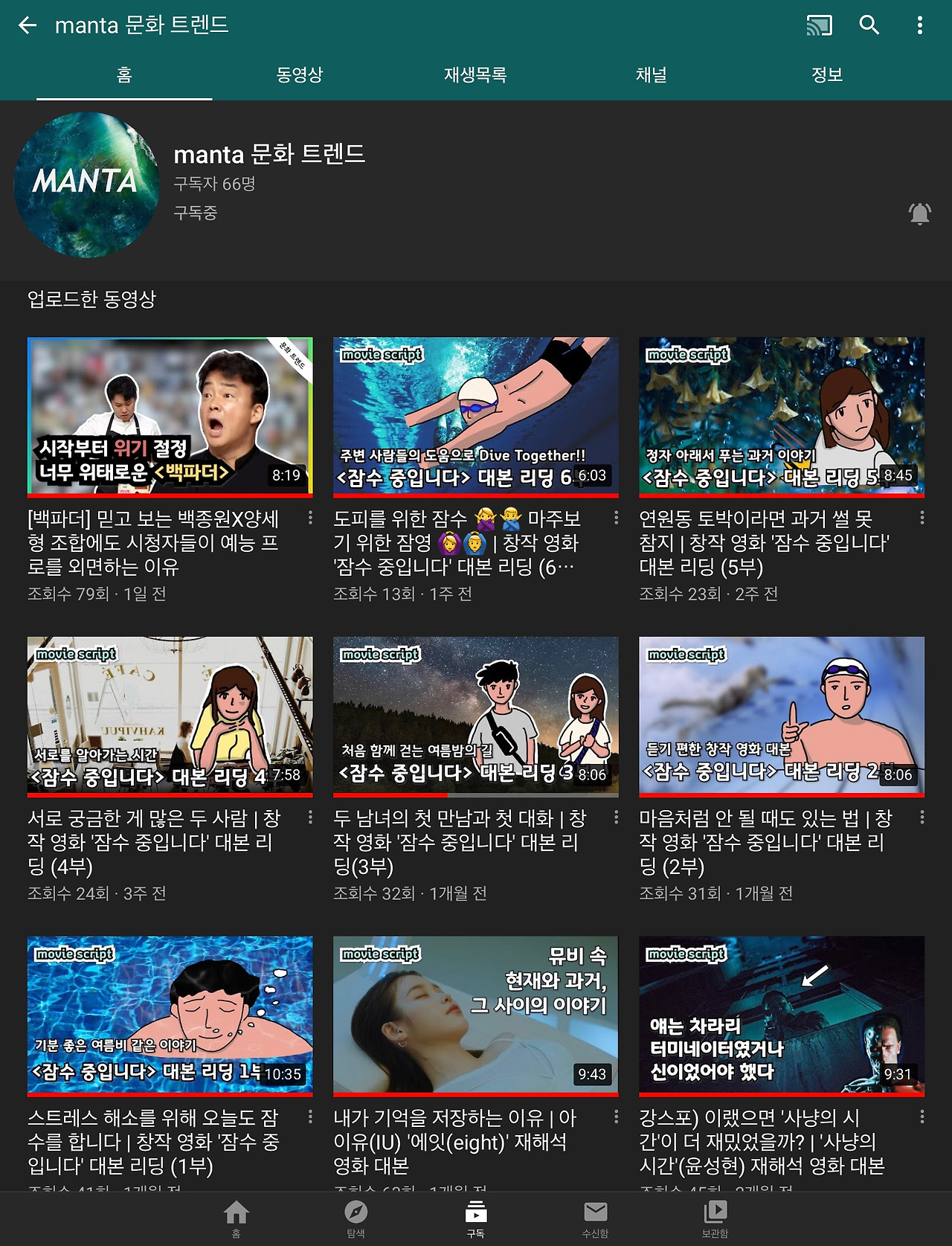 코로나의 영향인지, 일하고 싶은 산업군의 특성인지는 몰라도 지난 반년 구직활동이 여의치 않았고, 유튜브에 영상을 매주 하나씩 업로드했습니다. TV 하고 영화를 좋아하다 보니 주제도 TV와 영화였고, 여러 잡설을 풀었죠. 마음 한 편에는 어떤 창작물의 리뷰가 아닌 제가 직접 만든 ‘오리지널’ 이야기를 만들고 싶다는 욕구가 늘 있었습니다. 그래서 콘티를 직접 그리고, 대본 리딩을 하는 ‘영화 대본으로 만들어 보았다’ 콘텐츠를 기획하고 진행했습니다. 최소한 제가 보는 영상 선에선 비슷한 형식이 없는 새로운 콘텐츠였습니다. 새 콘텐츠를 선보이고, 사람들의 반응을 살펴보려 했죠. 그러나 신생 채널의 완전히 새로운 콘텐츠는 알고리즘에게는 아무런 시청 정보가 없는 콘텐츠였고, 시청자 유입이 없어 사람들의 반응을 살펴보기도 힘들었습니다.