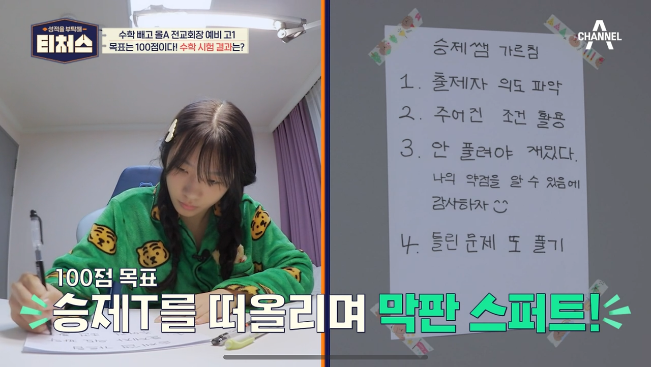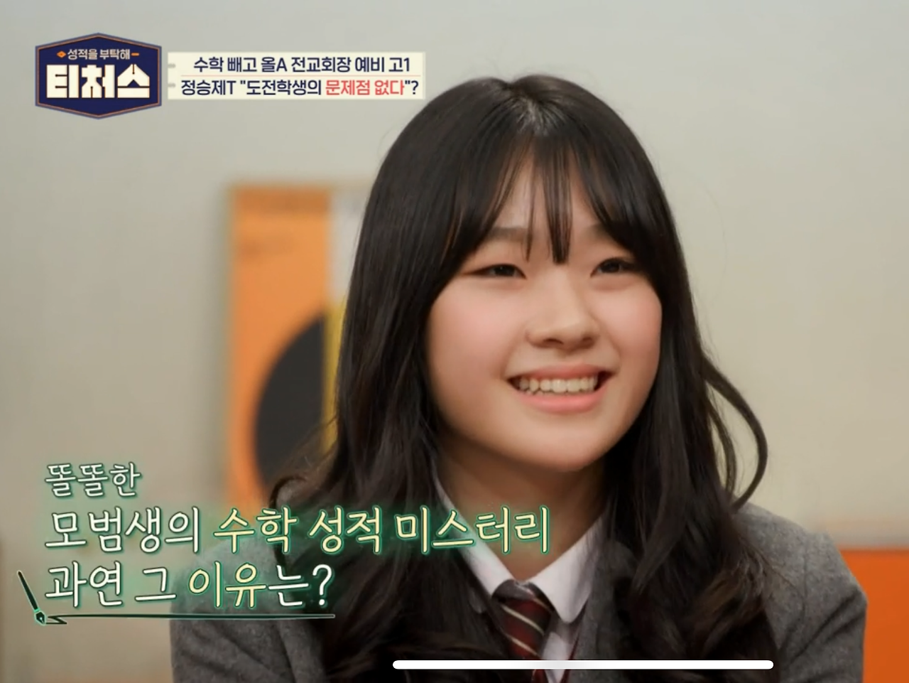 ‘성적을 부탁해 티처스 4화’의 똑똑이는 고대부중 전교 회장 중3 이유리 학생이었습니다. 평소 공부도 열심히 하고 활달한 모습과는 달리 수학에서만 점수가 나오지 않아 고민을 하고 있었습니다.