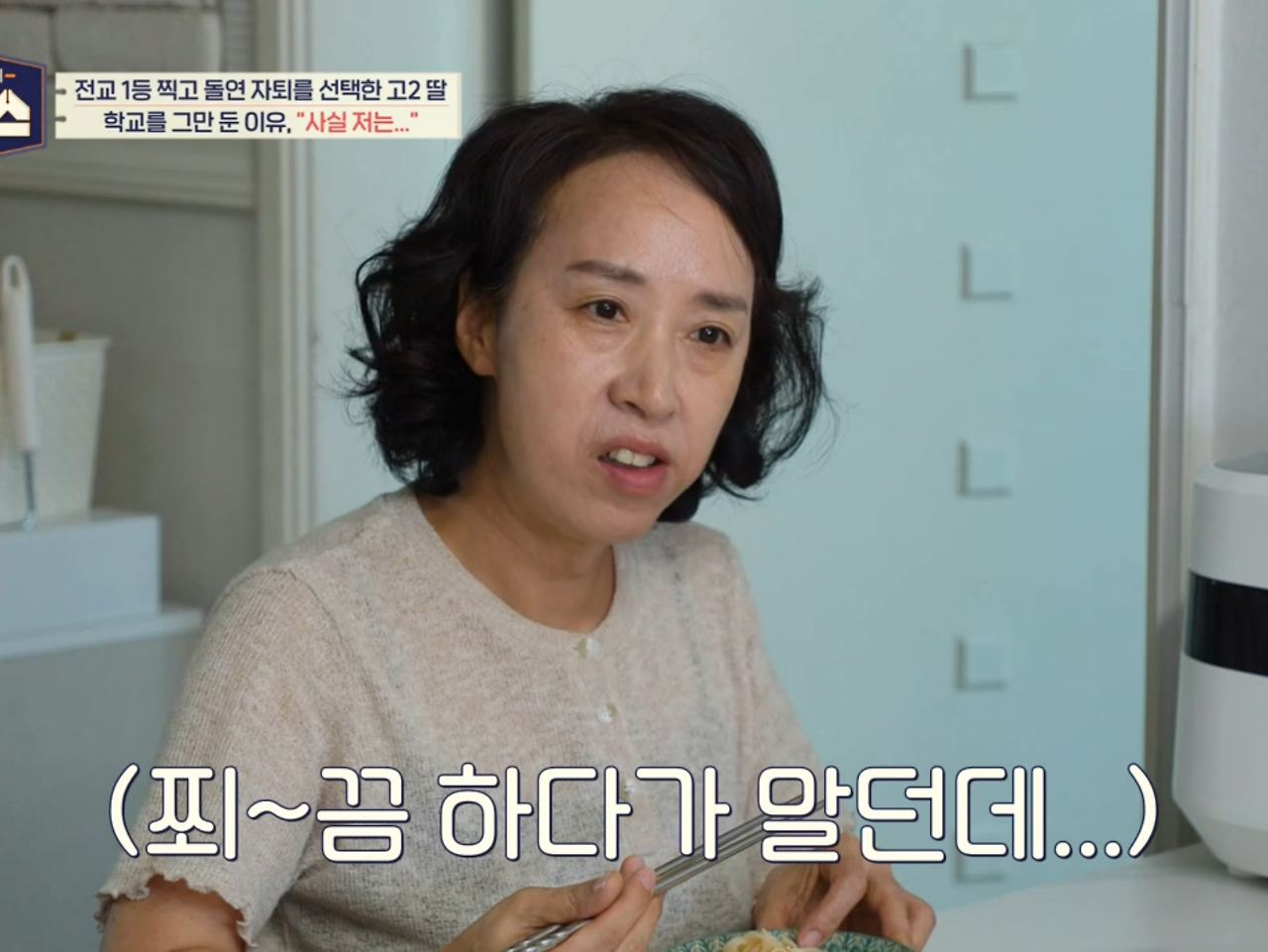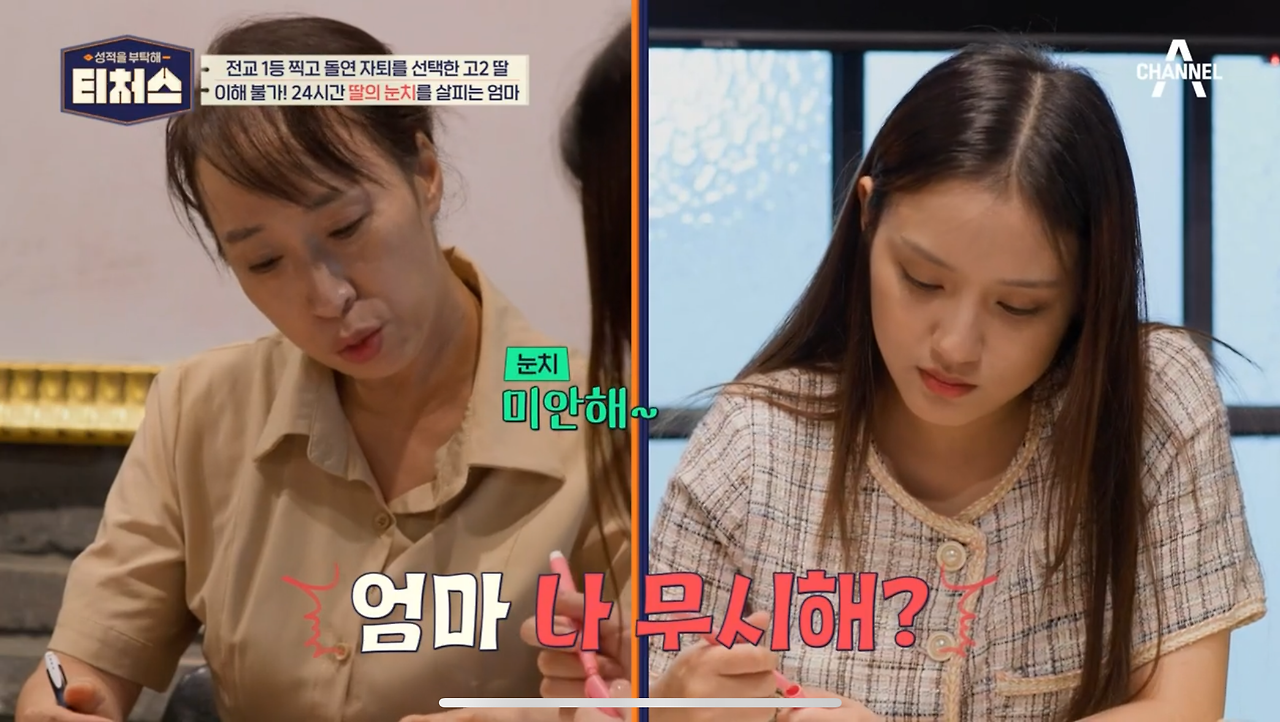 (공부 계획표를 확인하며) "앗싸~ 엄마 생활비 굳었다~ (잠시 후) 너 때문에 속상해서 칼로 풀고 있어"