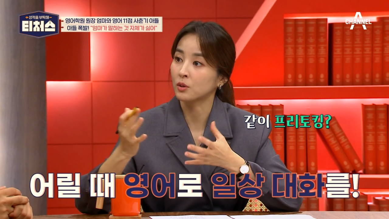 5살 때 엄마가 영어로 대화를 시도하자 민성이는 귀를 틀어막고 “하지 마!”라며 악을 썼다고 이야기를 하는 장면이 있습니다. 이 상황에서도 엄마는 “아이가 (영어 조기 교육에) 부담이 된 것 같다."라며 자기 합리화를 하고 있죠.