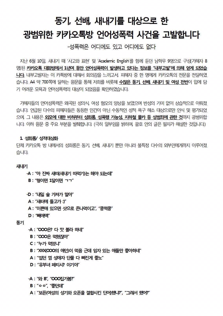 고려대 정경대 내 매우 심각한 언어성폭력 사건에 대한 대자보