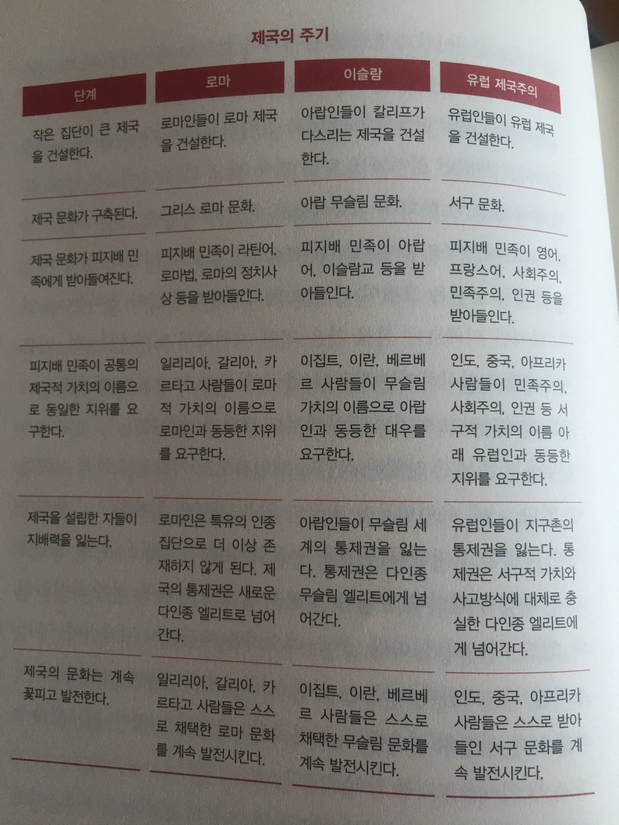 거의 모든 제국은 유혈사태 위에 세워졌고 압제와 전쟁으로 권력을 유지..이웃나라와 신민을 비참한 야만인 취급했으나 평화와 정의와 교양을 전해주고 있다고 생각. 자유주의 자유무역이라는 쌍둥이 복음을 퍼뜨리겠다는 영국의 사명엔 해가 지지 않았다