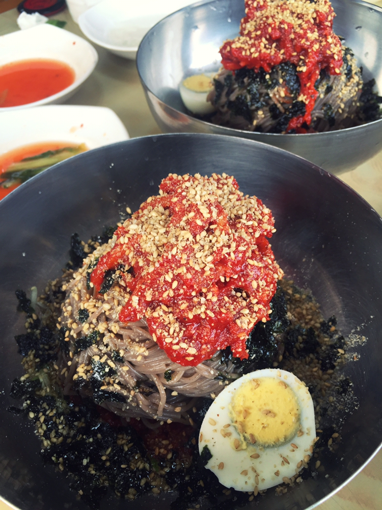 1시20분쯤 왔더니 앞에 10팀. 책 읽으며 30분 대기하니 뒤에 10팀. 전국 3대막국수?ㅎ;;달달매콤 명태식해가 비빔막국수와 수육을 더 맛나게. 수육(2.5만)과 만두(5천)도 훌륭! 강릉 동해막국수 본점