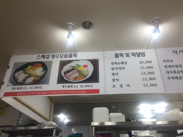 무도 보고 나섰더니 찜한 식당은 재료 떨어졌다고. 옆집서 주문 후 잠시 자리 비운새 가족들이 물회 사진도 안찍고 비벼서..막판에 다른 테이블 나가는 물회 촬영. 먹방 과욕 인증ㅠ 강릉 사천진 호미곶자연산횟집