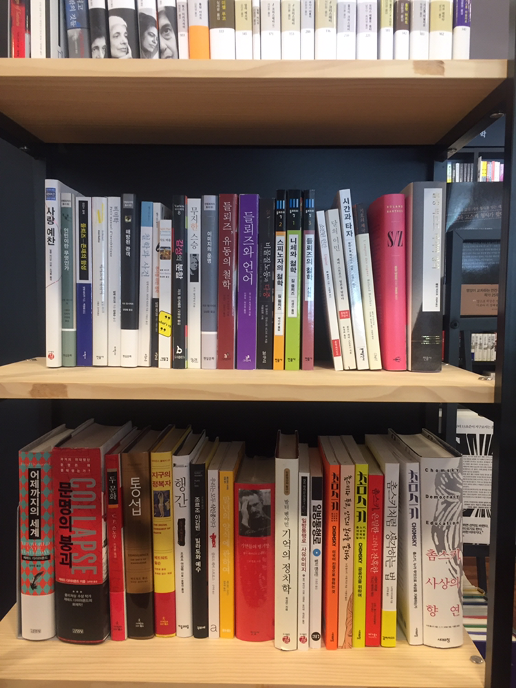 속초갈때 내비 어디 찍을까 고민 별로 않고 동아서점! 적당한 규모에 세심하게 고른 큐레이션. 히가시노 게이고를 몽땅 모아놓은 옆에는 들뢰즈, 촘스키도 각각 한 줄. 에세이 중 이번에 가져온 책 괜히 반갑고ㅎ