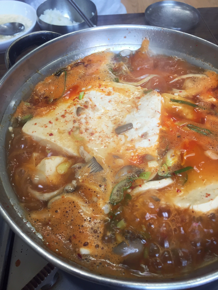 초당두부동네 휴가철 주말 오전 9시는 피크. 주차부터 자리잡는게 만만치않다. 밍밍 순두부(7천) 오랜만. 옆지기는 매콤 두부찌개(8천)를 더 선호. 집집마다 맛 구별할 자신 없고ㅋ 강릉 고분옥할머니 초당순두부