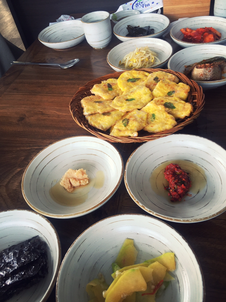 동해의 생대구로 갓 부친 전(2만)은 녹는 맛. 탕(1인 1.5만) 3인분 추가하니 4인 가족 충분. 깊고 맑은 국물. 소년은 "비린 맛이라곤 없다"고 평. 김에 싸먹는 청어알젓 대구알젓도 밥도둑. 속초생대구
