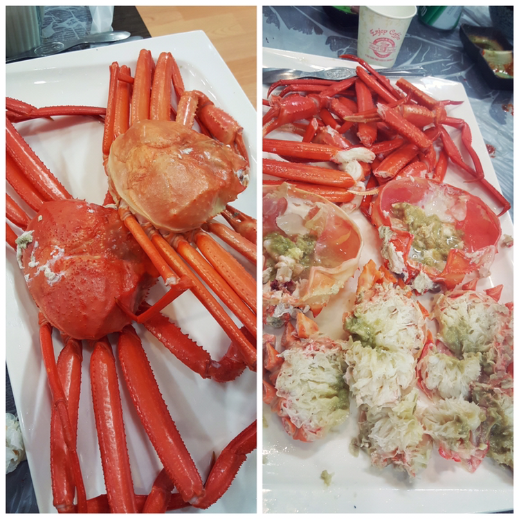 검색신공으로 가성비, 구성 등 감안해 찾아낸집. 아이들 행복지수 업. 자연산 광어+게 셋트 16만원. 인당 4만원에 상당히 실한 해물에 푸짐한 회와 게. 마지막 매운탕까지 된장 국물 굿. 강릉 사천 솔바로횟집