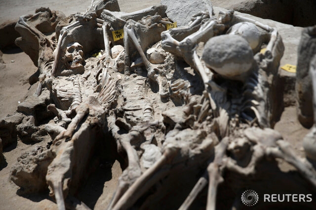왼쪽 : 아테네에서 발굴된 고대 팔리론 델타 공동묘지의 해골들은 쇠고랑을 찬 채로 발견됐다.