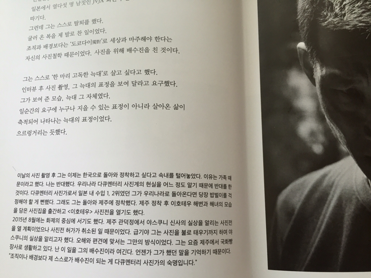 사진집 리뷰는 사진을 인용할 수 밖에 없고. 폰카로 찍어 올린 거라 엄밀히 따지면 저작권 침해가 될 수도 있어서, 저작권자께서 이 정도는 봐주실거라 믿으면서 트윗했다. 브런치에 옮겨놓는다.