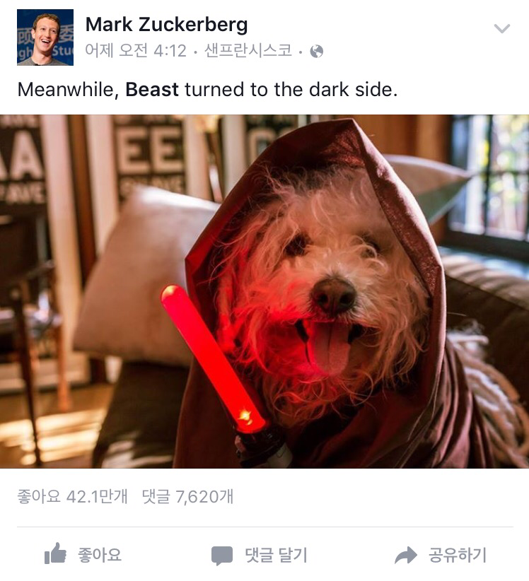 그런데.. 하나 더 올리셨음. 페북 CEO는 요즘 이러고 사심. 음. 휴가셨던가? 귀욤귀욤ㅎ