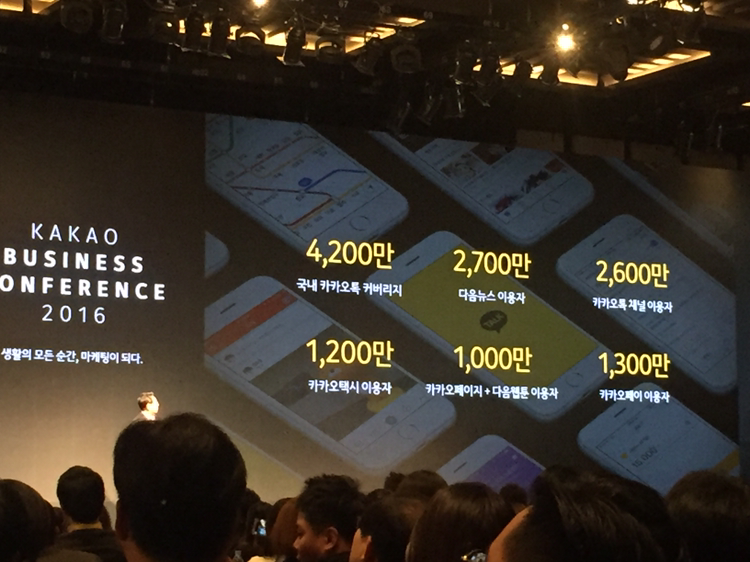 카카오톡 4200만. 다음뉴스 2700만. 카톡 채널 2600만. 카카오택시 1200만. 카카오페이지-다음웹툰 1000만. 카카오페이 1300만. 사람과 사람을 잇는 메신저에서 사람과 세상을 잇는 플랫폼으로. 플랫폼들이 결합하는 플랫폼 #카카오비즈니스