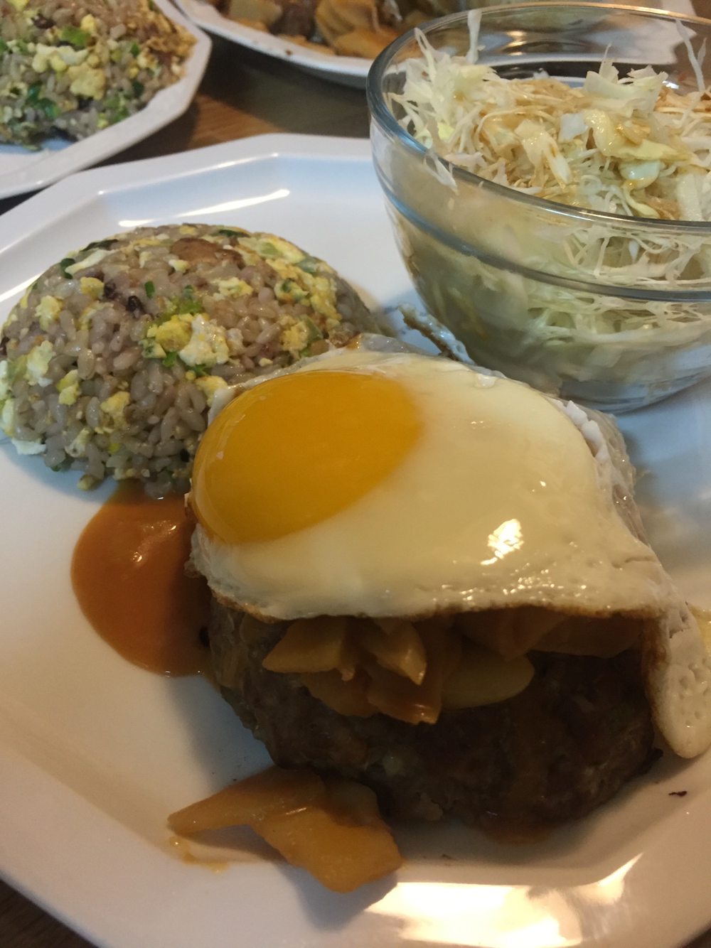 31. 점심에 미트볼 만들고 남은건 함박으로. 몇년만에 해봤는데 잘됐다. 별거 아닌데 점심저녁 다 훌륭하다는 아들 칭찬. 버섯 등으로 엉터리 소스 만들고 계란후라이를 올렸다. 찬밥은 파와 계란으로 볶고. 양배추 듬뿍