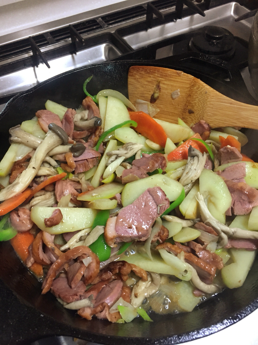 29. 토욜에도 오전에 미리 만든 저녁 반찬. 오후에 바쁠거 같아 일찌감치 휘릭. 오리고기 반팩에다 냉장고 온갖 야채, 감자 당근 양파 버섯 파 마늘 고추를 마구 볶은게 전부. 먹고 사는데 손이 참 많이 간다.