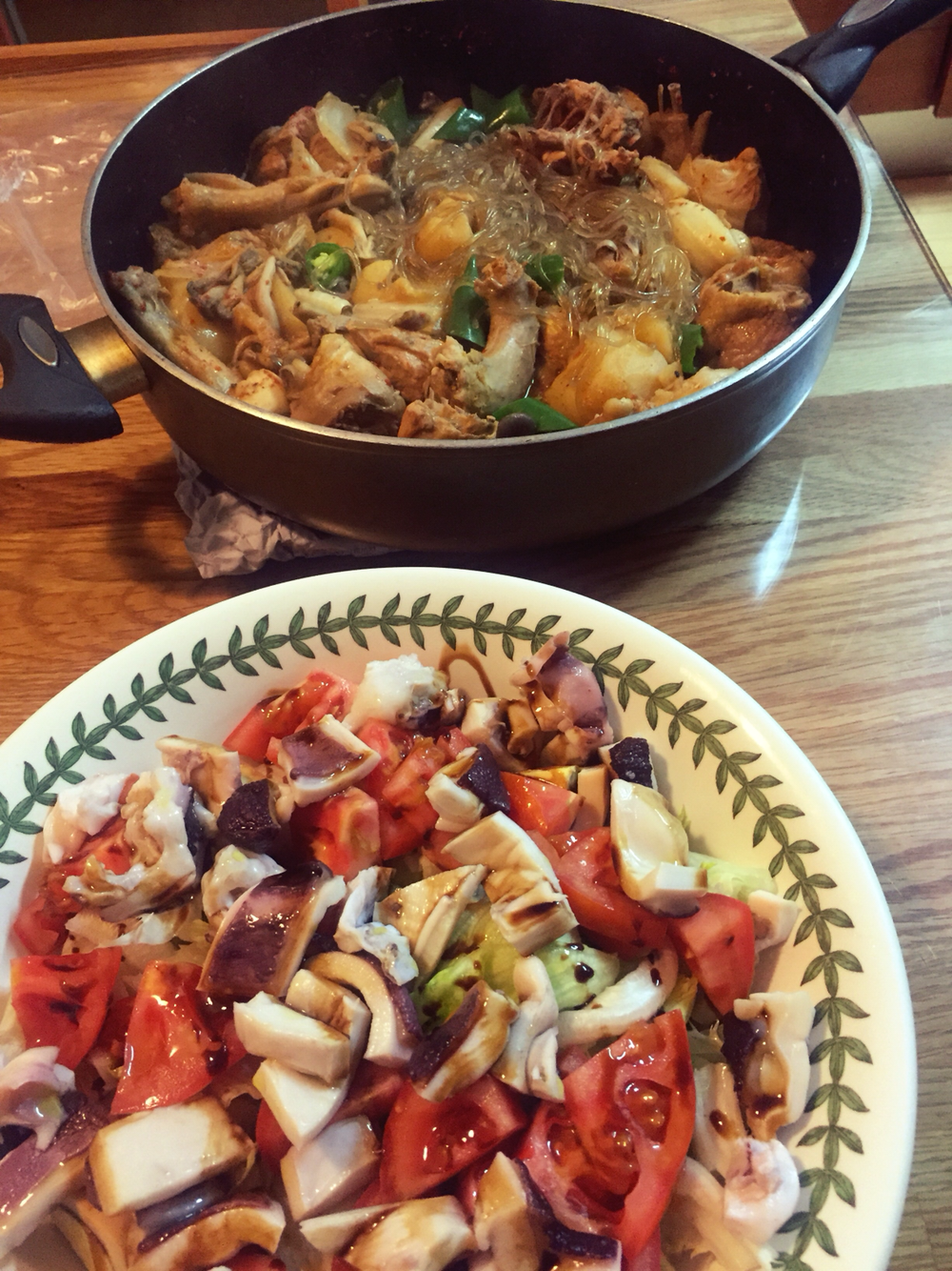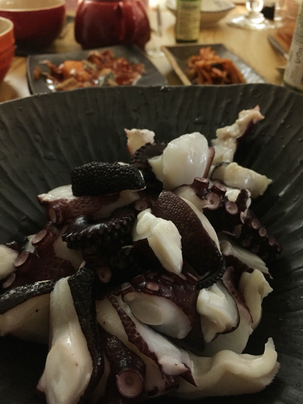 3. 이번주 마트 반값 득템은 모리타니아 자숙문어. 살짝 데쳐서 반은 아침에 참기름 살짝 둘러 먹고, 반은 저녁 샐러드. 또 찜닭이냐 감히 묻던 남자는 양념을 바꿨더니 폭풍흡입. 케이팝 보며 저녁. 다들 참 대단