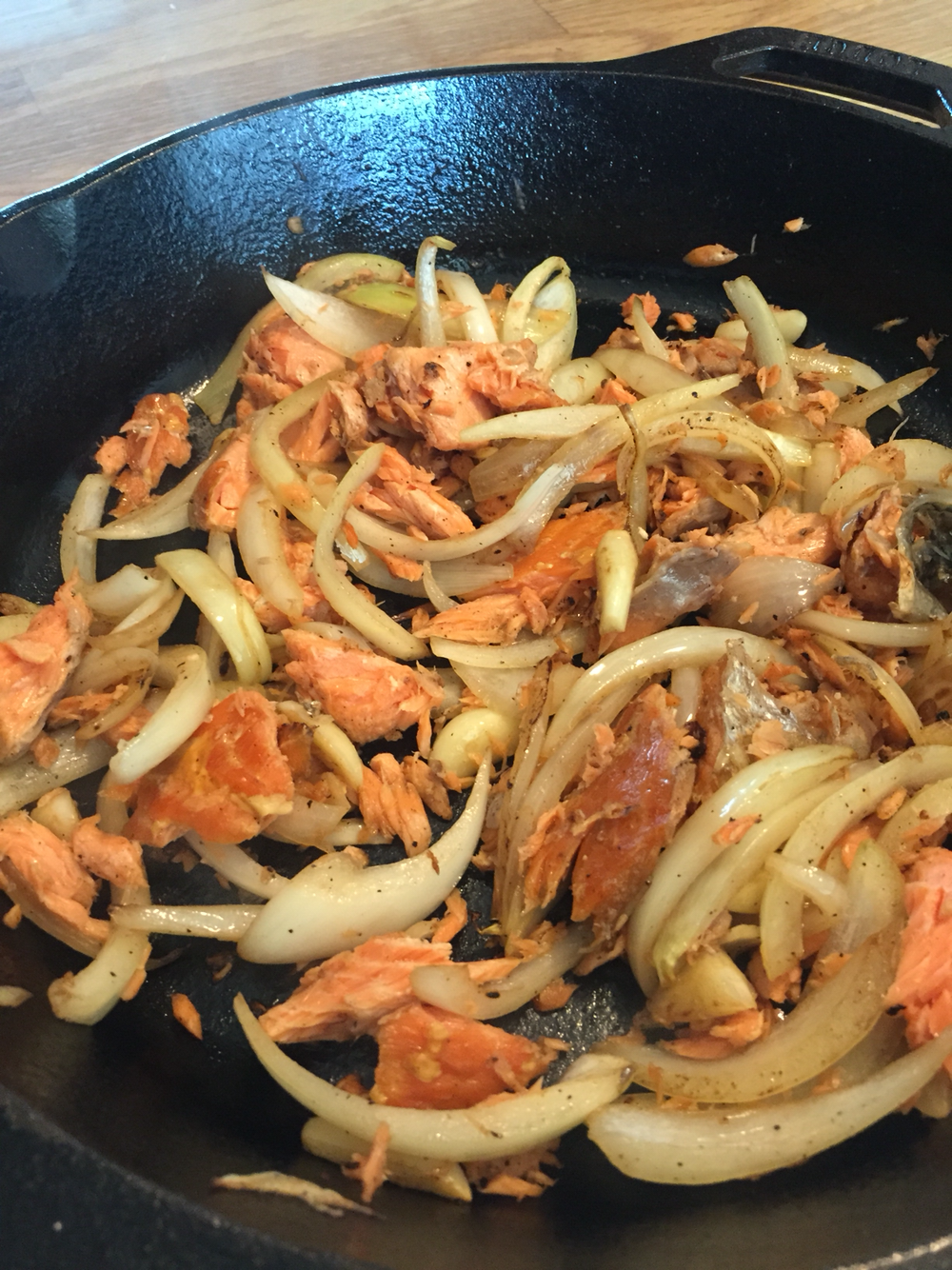 20. 45% 할인해 3289원 득템한 훈제연어 한 팩으로 만든 난장판 볶음. 지난번엔 두 팩 써서 연어 모양살려 굽고 양파 볶아 곁들였으나. 아침으론 연어 양이 많길래 이번엔 한 팩만. 밥 양 적은 4인 덮밥용 딱