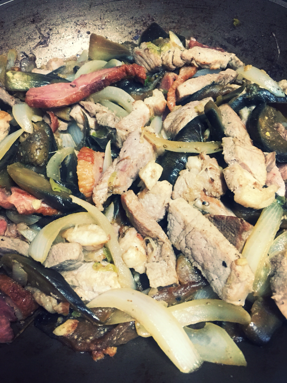 37. 일주일에 하루 오시는 아주머니, 메모를 분명히 남겼는데 고기 없이 가지만 볶아두심. 어쩔수없이 해동해놓은 돼지고기를 파마늘양파 소금후추에 볶고 가지볶음과 먹다남은 오리구이까지 짬뽕 마무리. 먹고 사는게 일이지