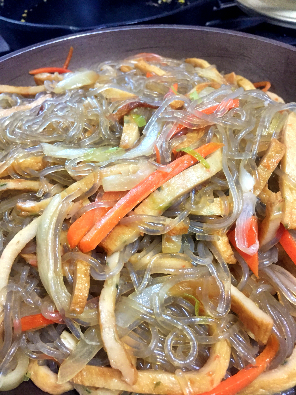 33. 아침에 해놓는 저녁 반찬. 어젯밤 어묵과 당근 양파 채썰어 파마늘에 볶어두었고. 아침에 당면 삶아 간장설탕소금참기름 양념해 같이 휘리릭. 지금이 제일 맛있을 때인데..지들이 잘 데워 먹겠지..생각을 너무 말자