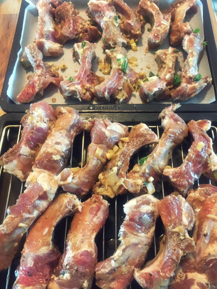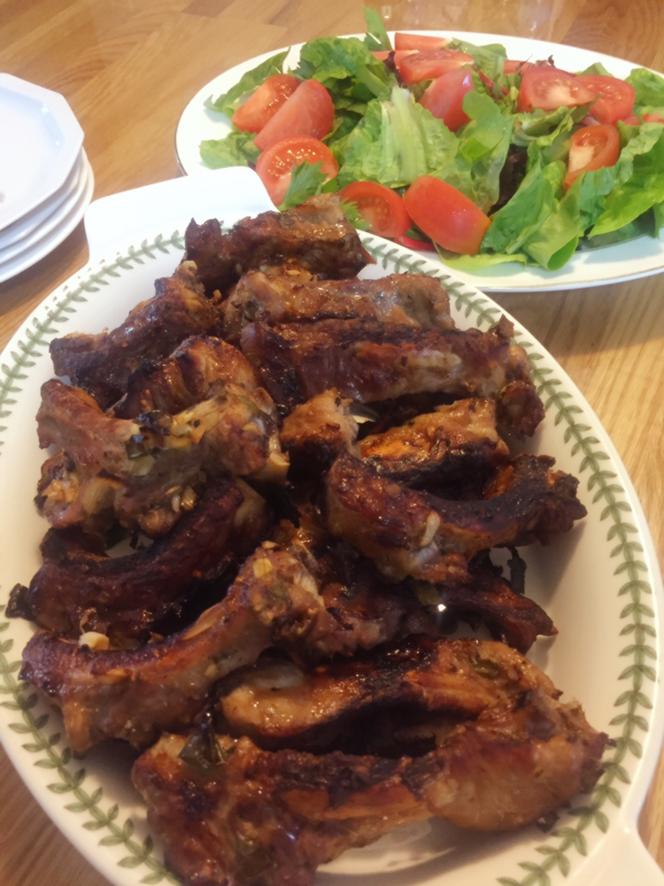 41. 스페인산 돼지 등갈비 세일해 1.6kg 1.6만원. 해동해서 썰어보니 두툼하게 살 붙은 립이 24조각. 간장매실청설탕참기름 파마늘 양념해서 하루 재운뒤 오븐에 구웠다. 레스토랑 달달 립보다 담백하고 괜찮다.