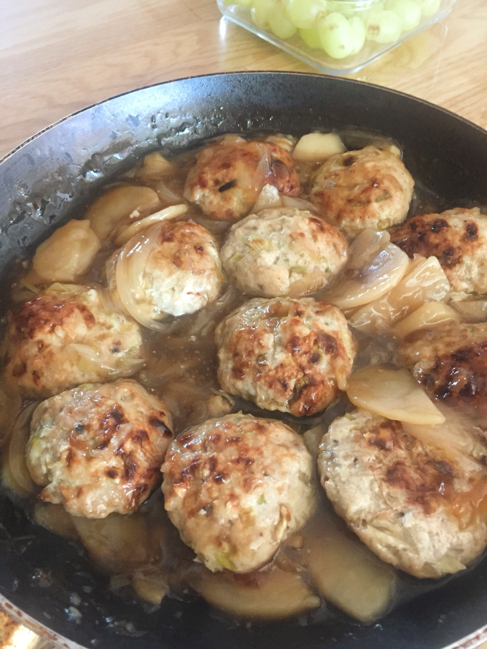 34. 밤에 하는 담날 저녁반찬. 돼지고기 갈은거에 파마늘양파소금후추. 특히 대파를 양껏 넣었고. 두부 반 모 물기 짠 뒤 추가해 완자를 만들고 오븐에 구웠다. 소스는 감자 양파만 간장설탕에 끓이다가 전분물. 만족.