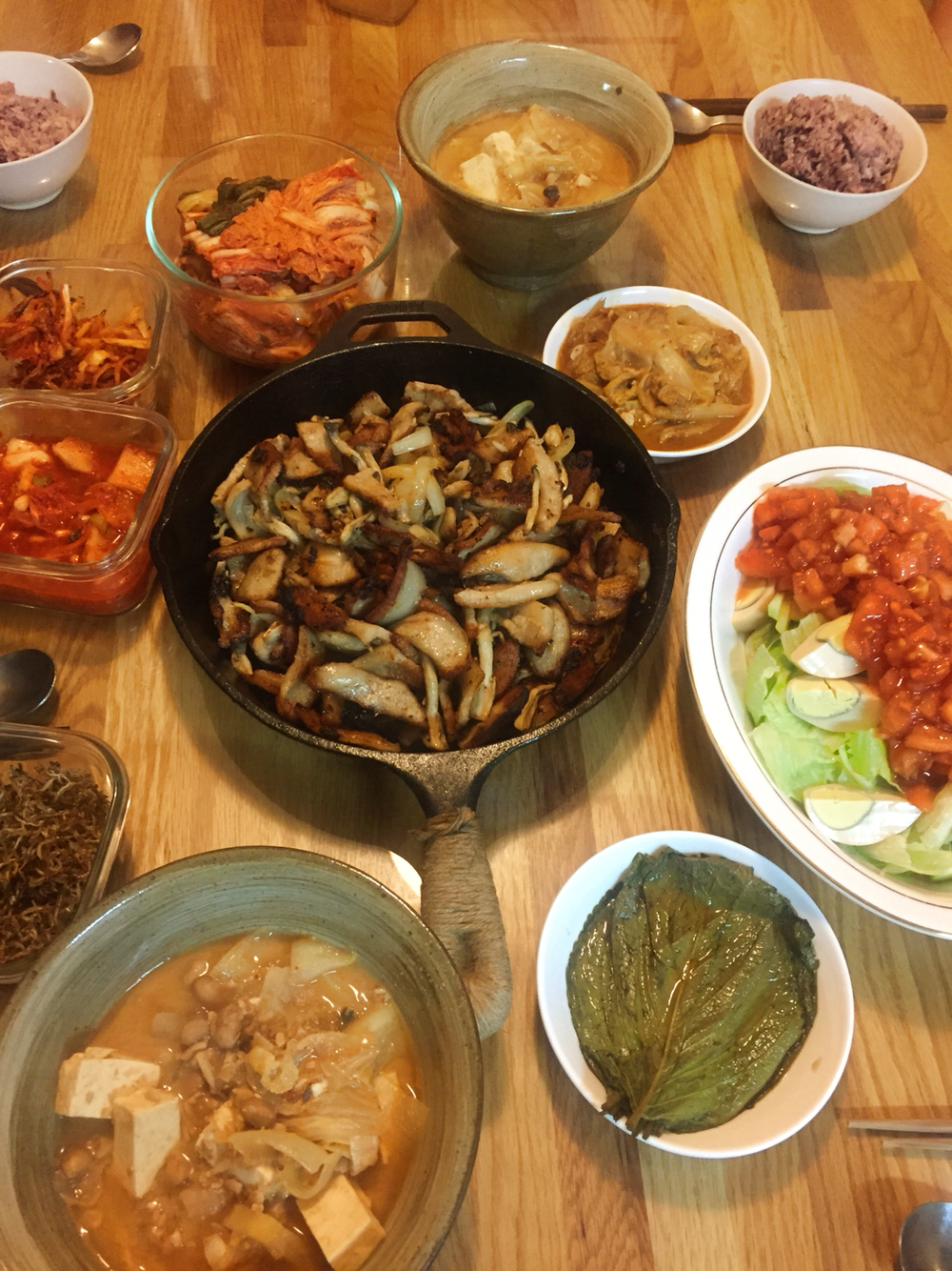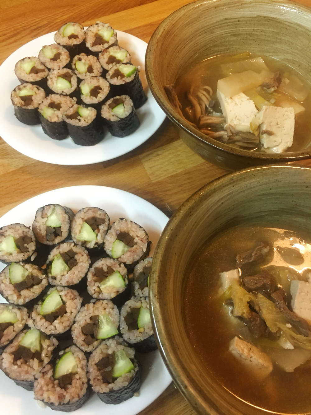 1. 첫 아침은 떡만두국. 지단도 대충, 비주얼 아쉽. 비비고 교자만두 괜찮다. 시엄니 여행가시고 시아버님만 오신 저녁. 배추를 살짝 데쳐 길게 찢은뒤 멸치육수에 된장, 고춧가루 조금. 자박하게 끓인다. 청국장까지