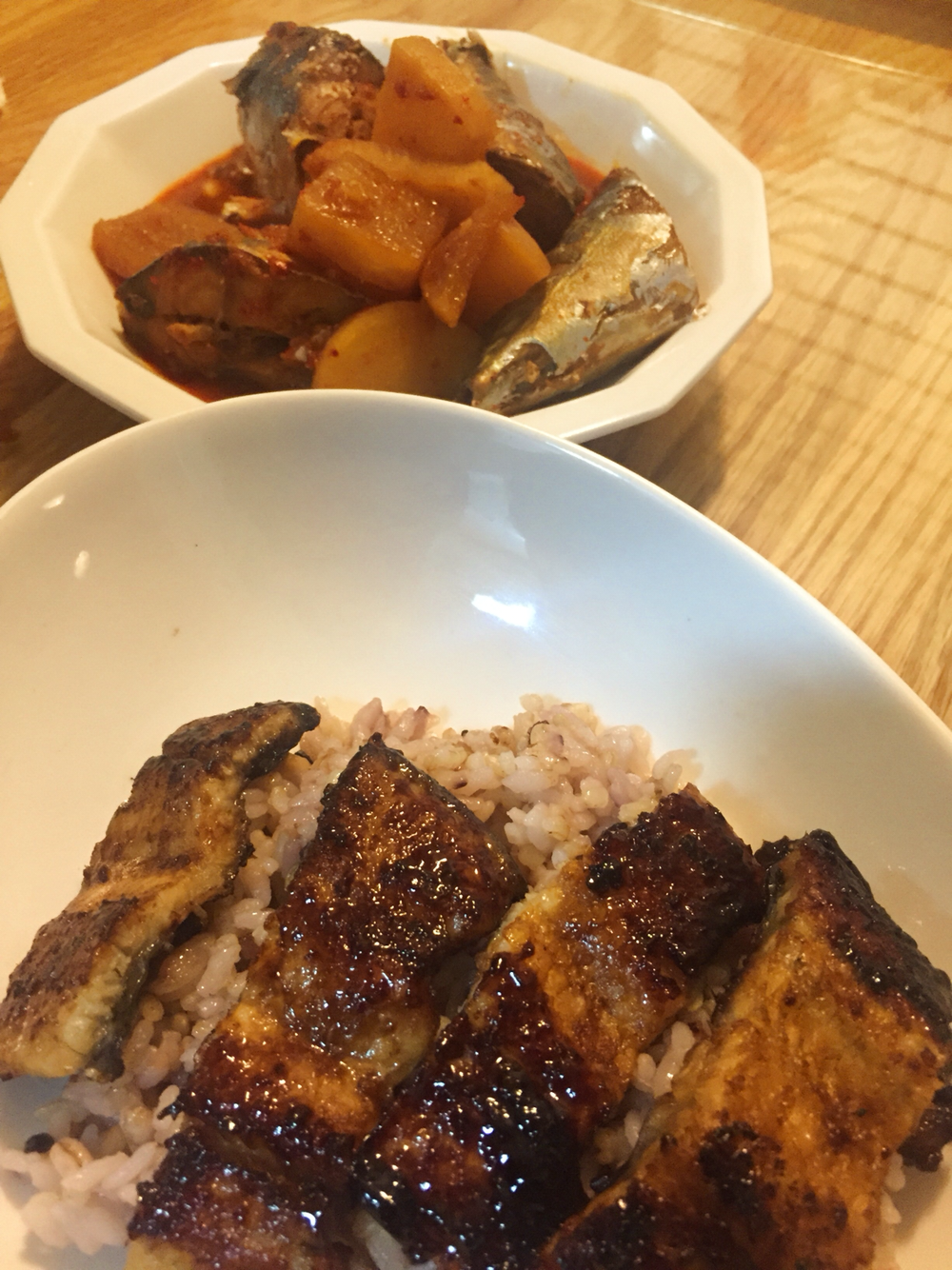 7. 어젯밤 운 좋게 두 번 할인된 장어를 거의 반값에 득템. 튼실한 한 마리 7300원. 소스도 들어있어 장어덮밥 흉내 냈고. 감자와 무를 넣고 고등어도 졸였다. 매실청과 생강꿀절임을 쓴 덕분인지 반응도 좋다.