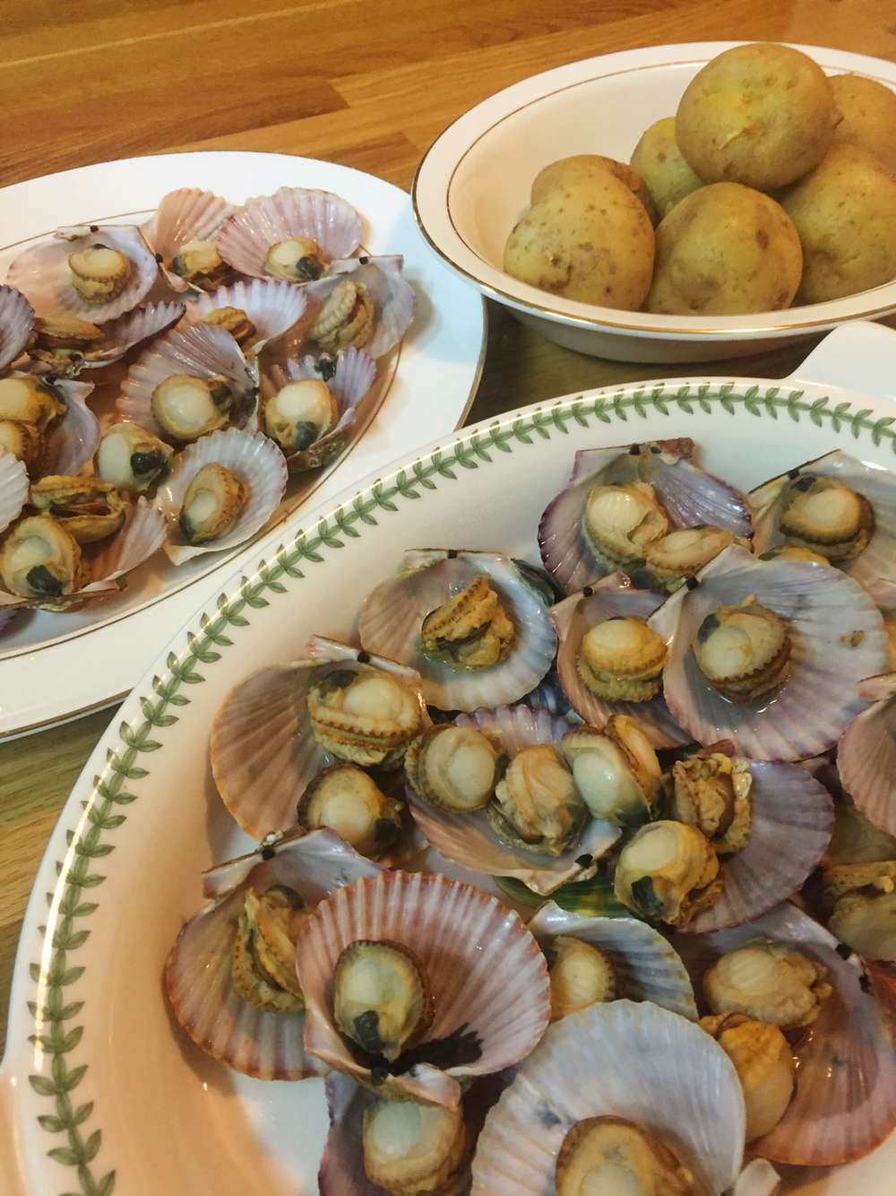 24. 농부들이 걱정 없이 농사짓도록 하겠다는 농사펀드 꽂혀서 주문한 감자와 가리비. 찐감자 소금 찍어 먹고 가리비 실컷. 국밥 남은것도 먹었는데 옆지기 지금 라면 끓인다.