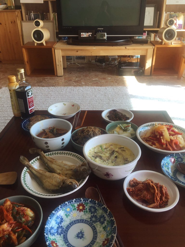 쿠르베 스피커 배달갔더니 한 상 차려주신 K선배. 조기찜과 버섯양파계란찜, 다포리 김치찌개도 근사했지만 김치 갓김치 등이 기막혔다. 선배네 합창단 노래와 사연 듣다가 youtu.be/ew8J2YtKYPc